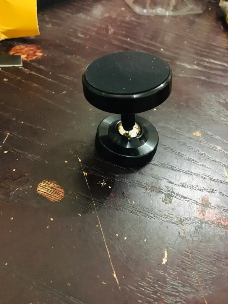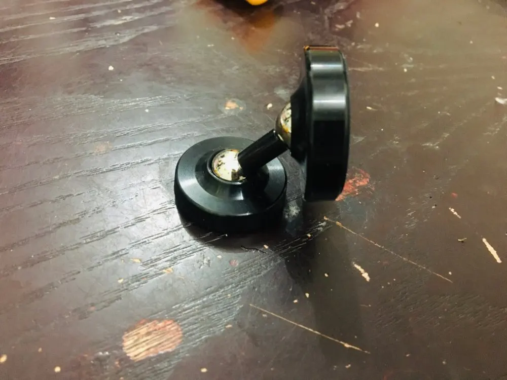 Приклеился крепко. К магниту в машине притягивается очень хорошо. Крутятся по кругу, что очень удобно!