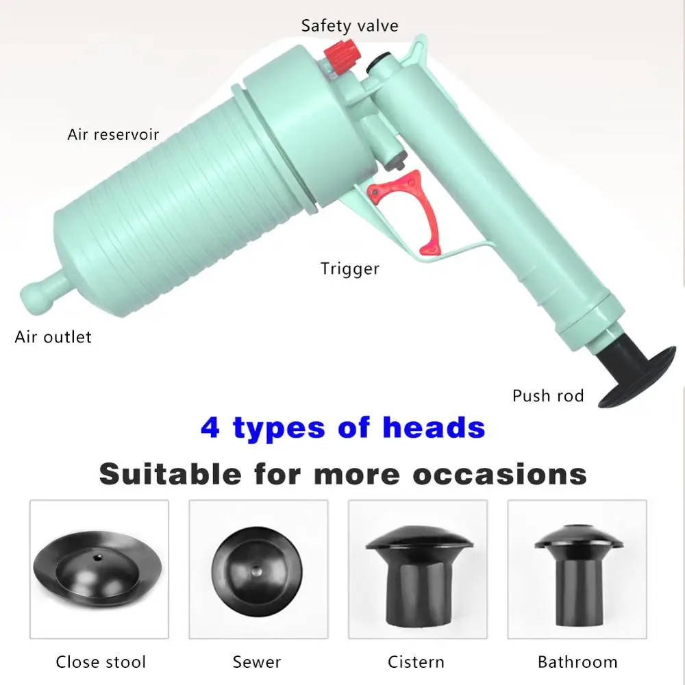 Пневматический насос, трубопроводный поршень, очиститель слива, раковины, трубопровода, съемник с зазубринами, инструменты для очистки ванной, кухни, туалета