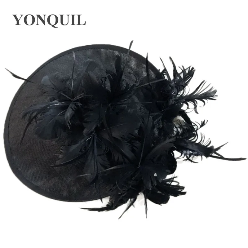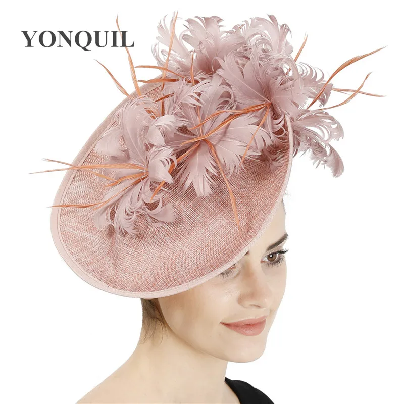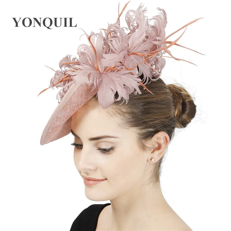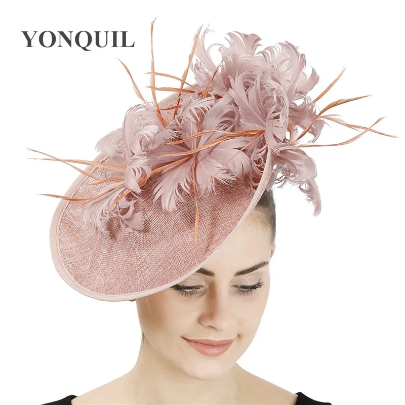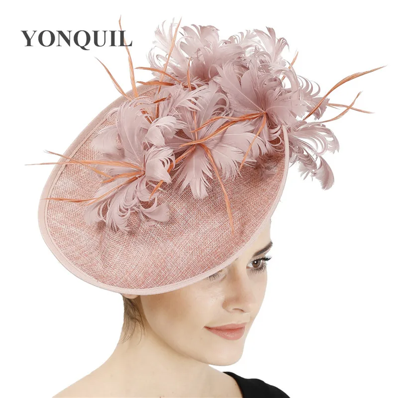 Шляпы с искусственными драпировками серого цвета, Коктейльная шляпа с имитацией Дерби Sinamay, женские свадебные вуалетки для волос, необычные перья