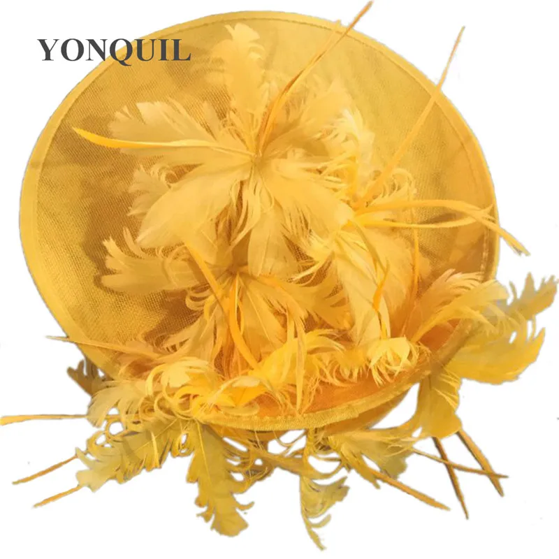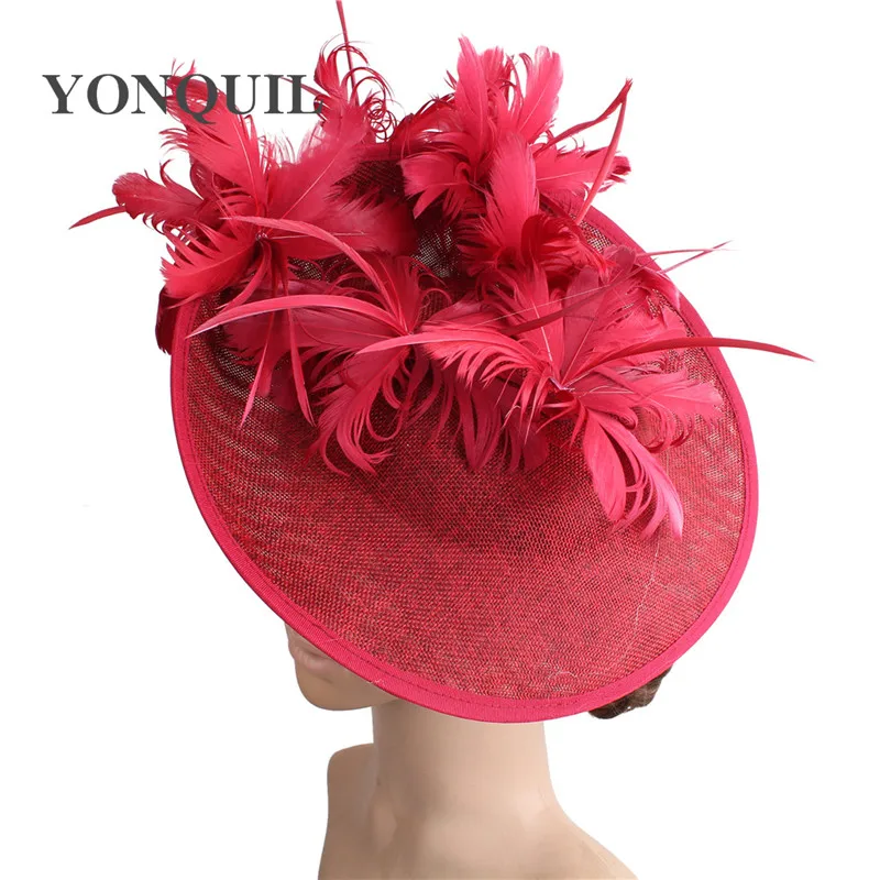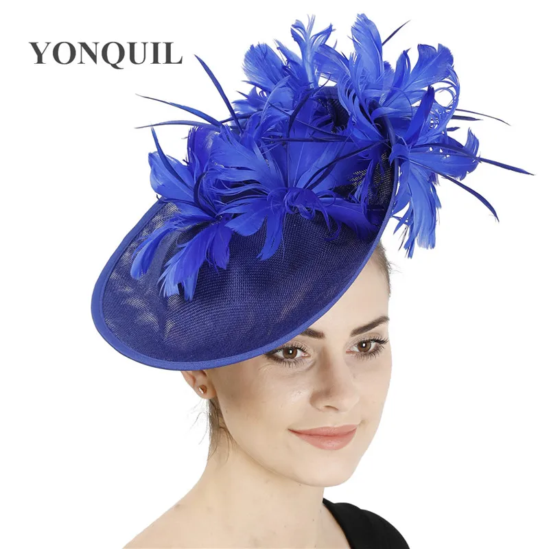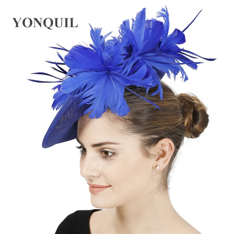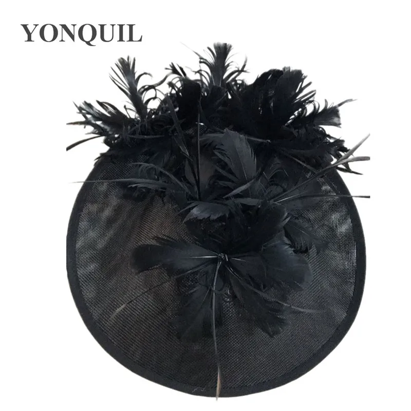 Шляпы с искусственными драпировками серого цвета, Коктейльная шляпа с имитацией Дерби Sinamay, женские свадебные вуалетки для волос, необычные перья