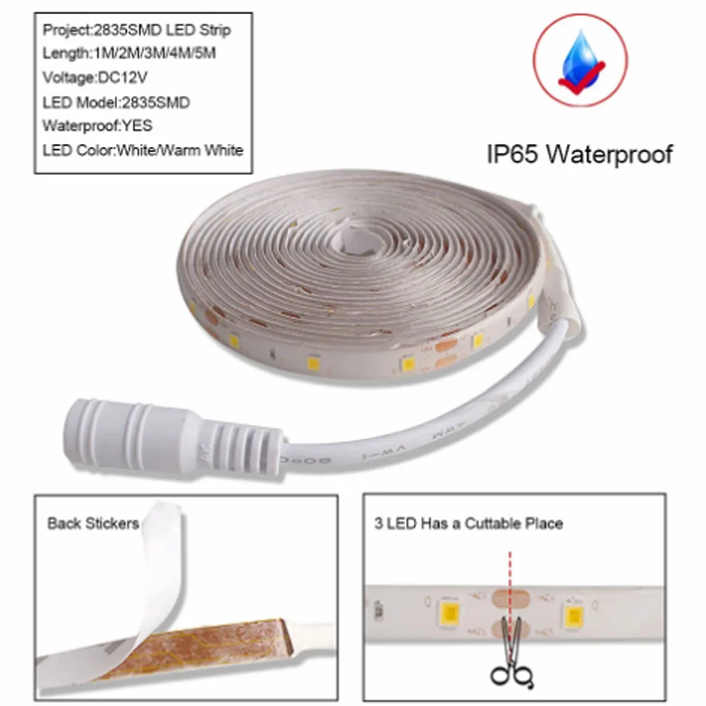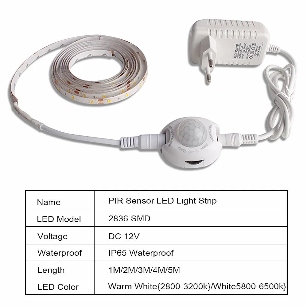 Водонепроницаемая светодиодная лента SMD2835 с датчиком движения Tira LED от 220 В до 12 В, Автоматическое включениевыключение, гибкая неоновая лента, 1 м, 5 м, источник питания для светодиодной ленты