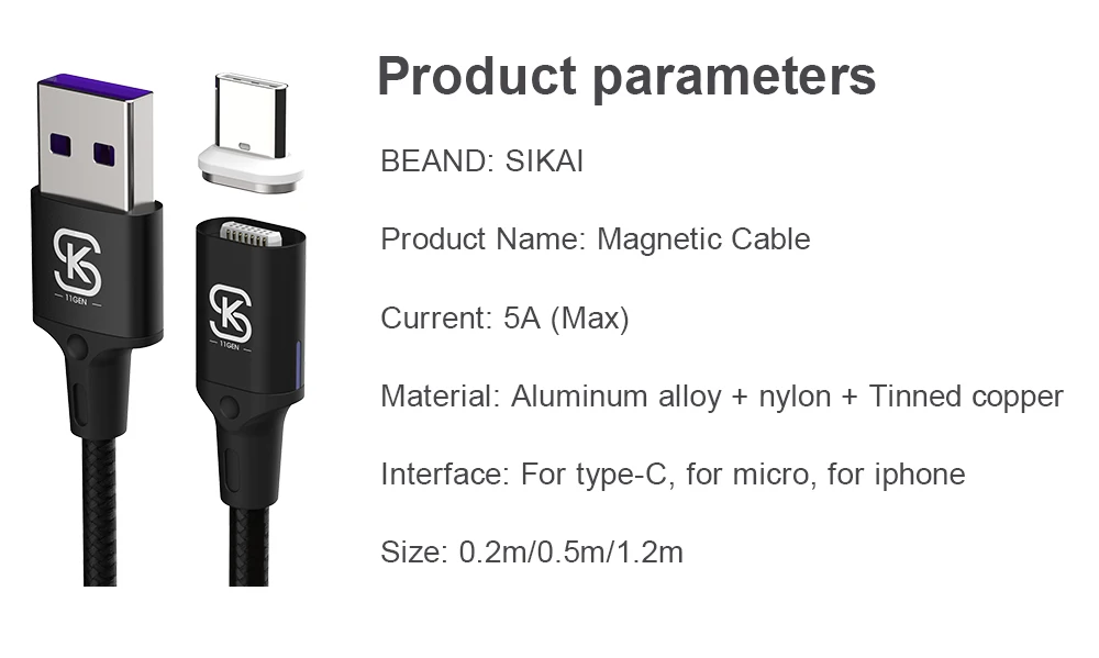 Магнитные Кабели usb Type-C 5A QC 1,2, Сверхбыстрая зарядка 4,0 м для Huawei P10 20 mate 20 pro honor 10 20, SIKAI для передачи данных телефона