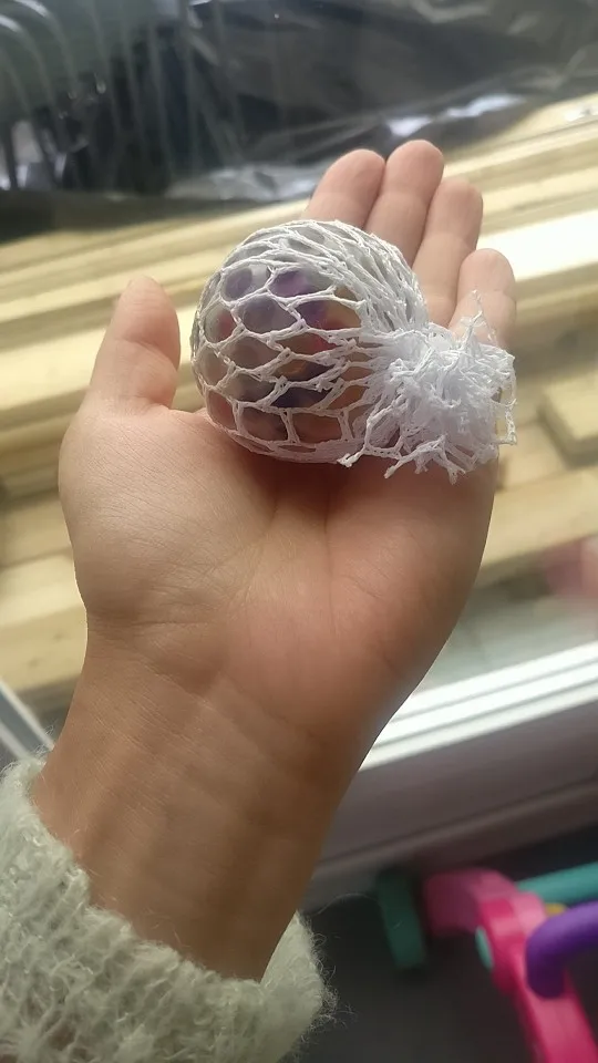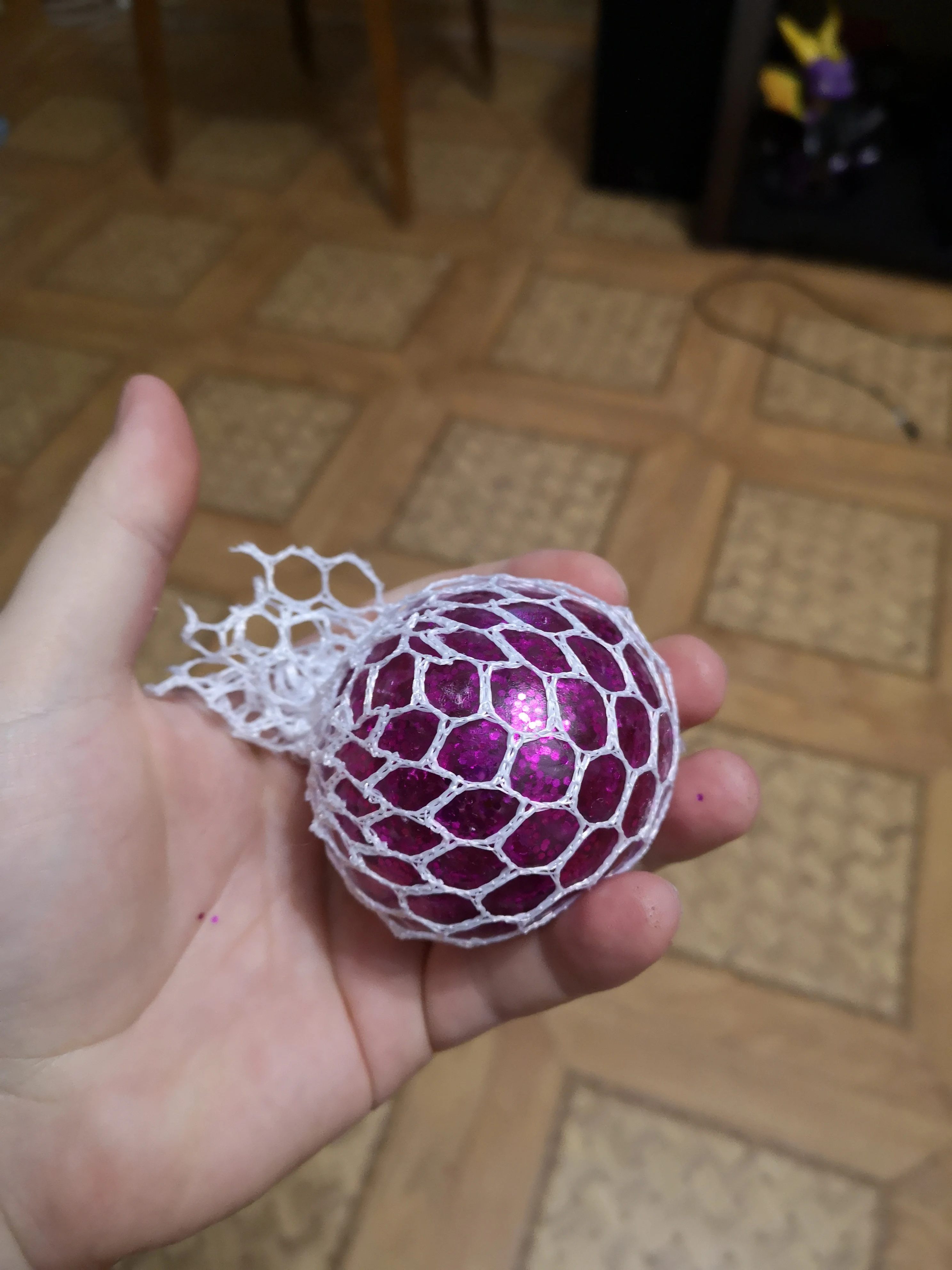 Товар соответствует описанию. После трех дней использования, сетка остается. Затем мяч сломался. Слишком плохо. Это была хорошая основная идея для снятия стресса. Необходимо улучшить продукт, чтобы сеть не выходила.