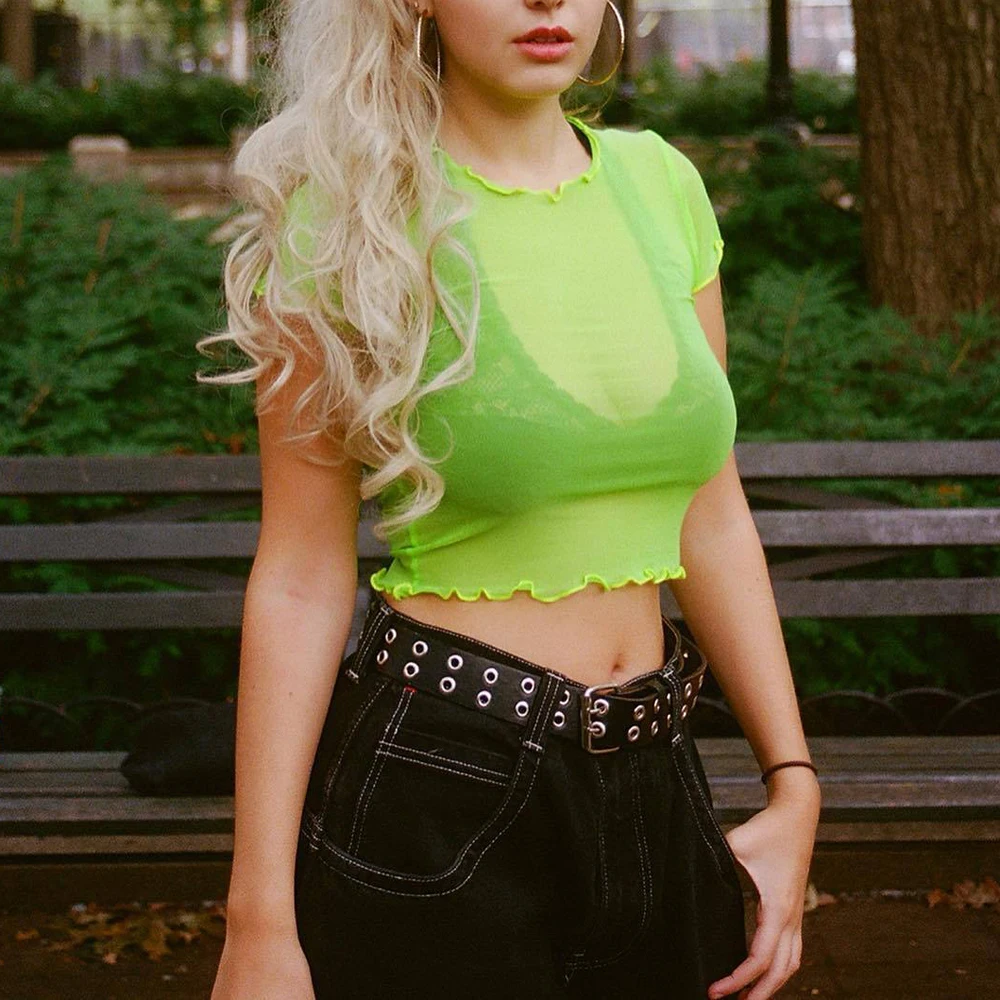 Женская Прозрачная Футболка WDC2242, облегающая прозрачная футболка с короткими рукавами и сетчатым верхом на лето
