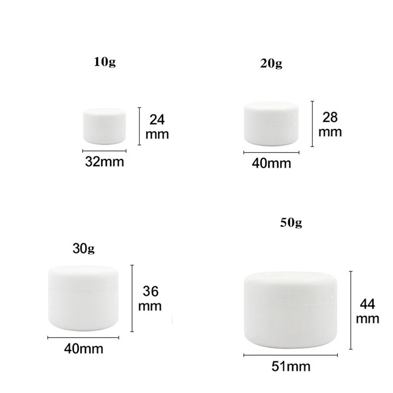 10 шт. 10 г20 г3 г50 г, пластиковая пустая банка для макияжа, многоразовые бутылки для образцов, дорожный фотокосметический контейнер, белый