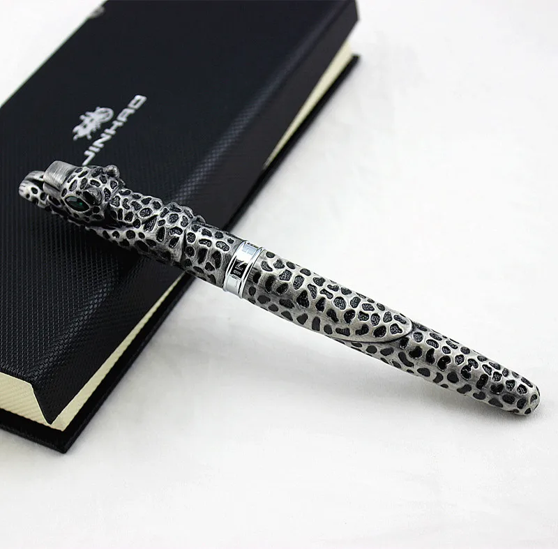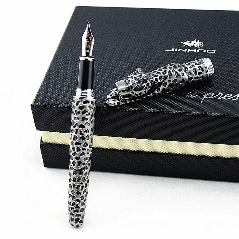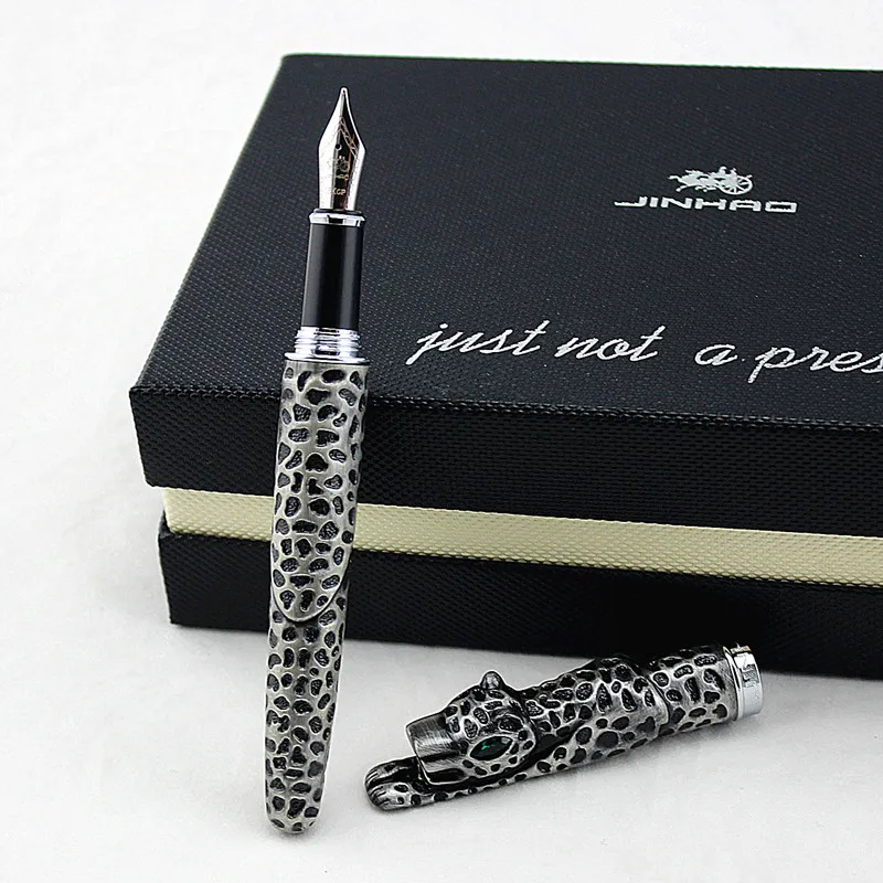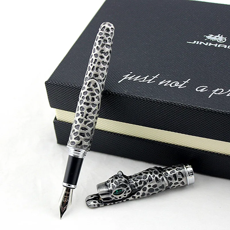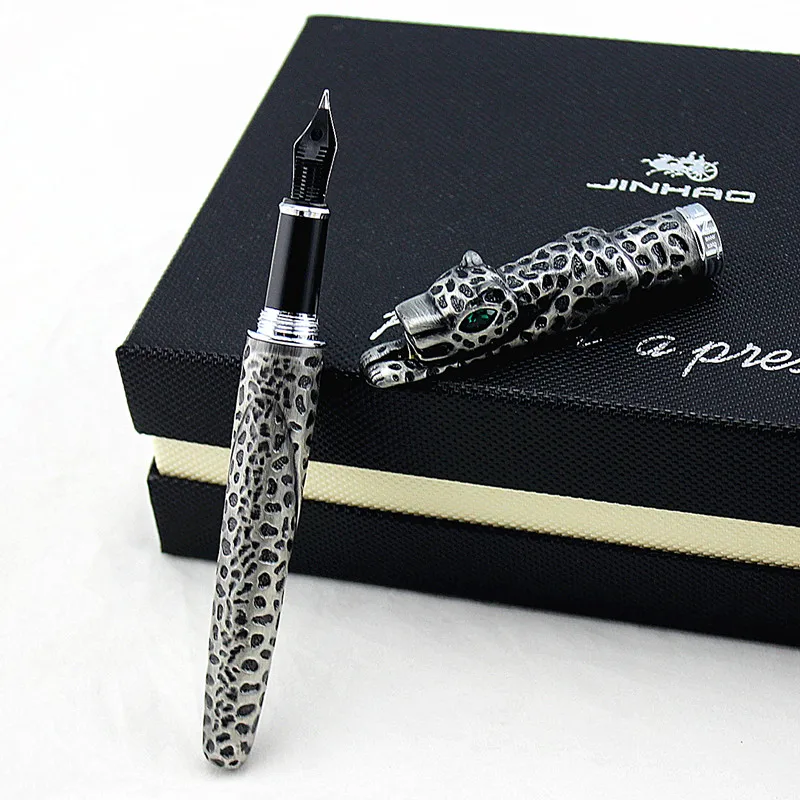 Ручка перьевая JINHAO с леопардовым принтом, Роскошная золотая карандаш с тяжелыми чернилами и зелеными кристаллами, с наконечником 0,7 мм, офисные принадлежности для подарка