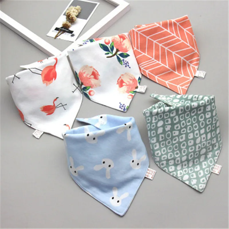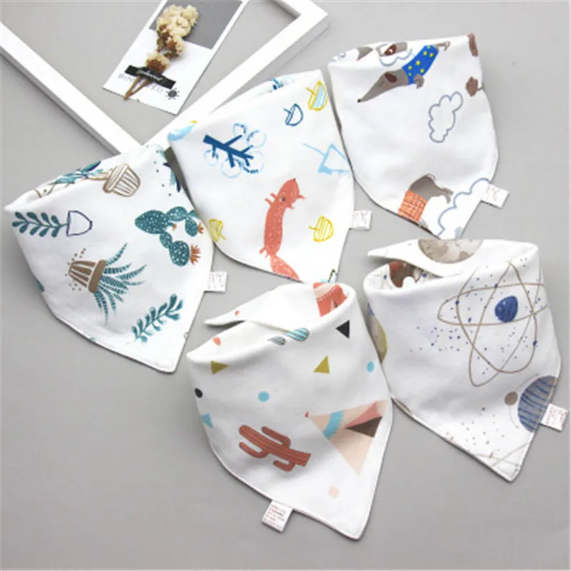 Детские треугольные нагрудники, двойные хлопковые нагрудники 5 шт.лот, Слюнявчики с мультяшным принтом, детские нагрудники-банданы из хлопка для мальчиков и девочек