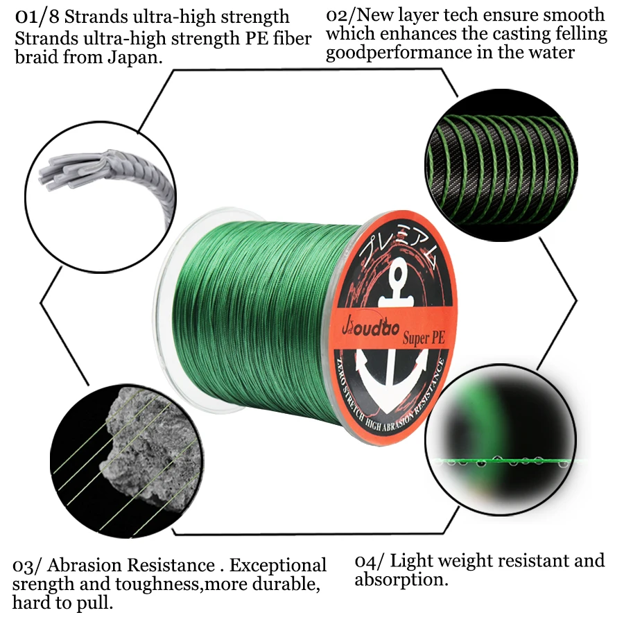 Jioudao série 8 brins PE tressé fil 300 м japonais Multifilament PE tressé ligne de pêche 10-220LB tresse 8 brins 300M