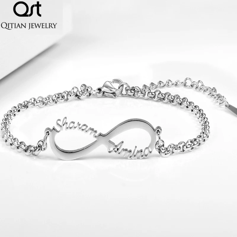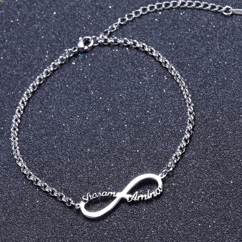 Браслет с именем бесконечности для женщин, персонализированный браслет ручной работы из нержавеющей стали с именной табличкой и гравировкой рукописного вкуса для влюбленных