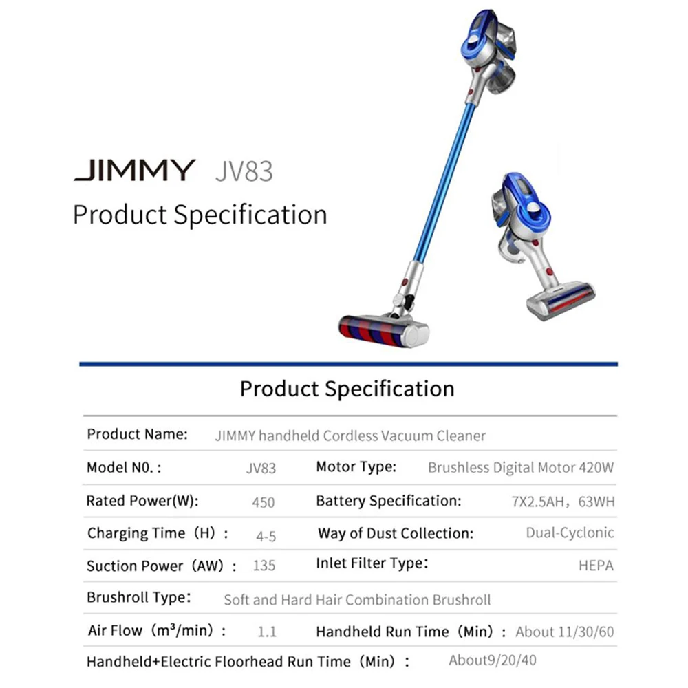 [Свободная пошлина] пылесос JIMMY JV83 JIMMY JV83 беспроводной ручной беспроводной пылесос 20 кПа против JIMMY JV53
