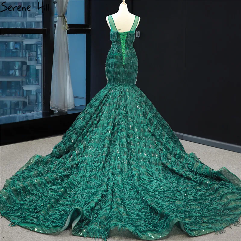 Дубай Роскошные перья Русалка сексуальные вечерние платья с v-образ...