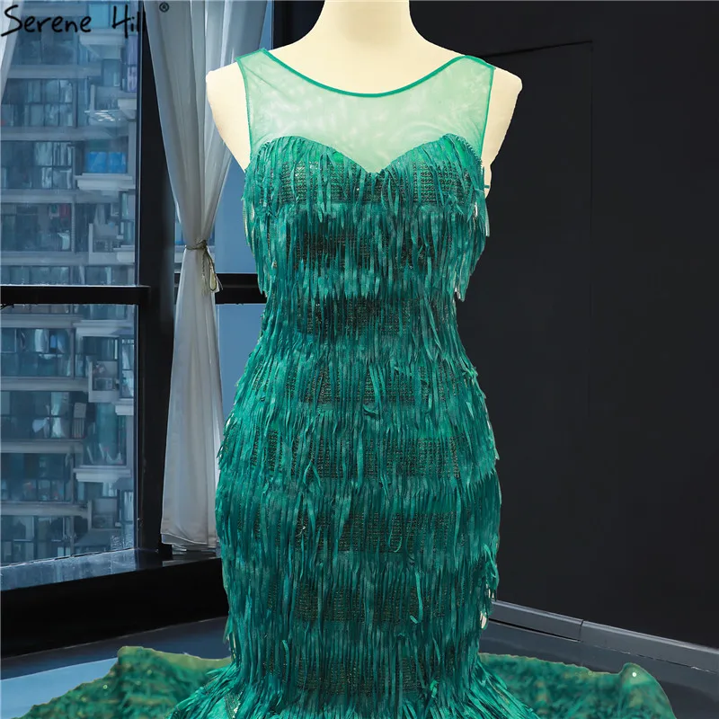 Зеленый новейший дизайн Свадебные платья с круглым вырезом без рукавов с кисточками Русалка сексуальные свадебные платья 2021 реальное изображение HM66864