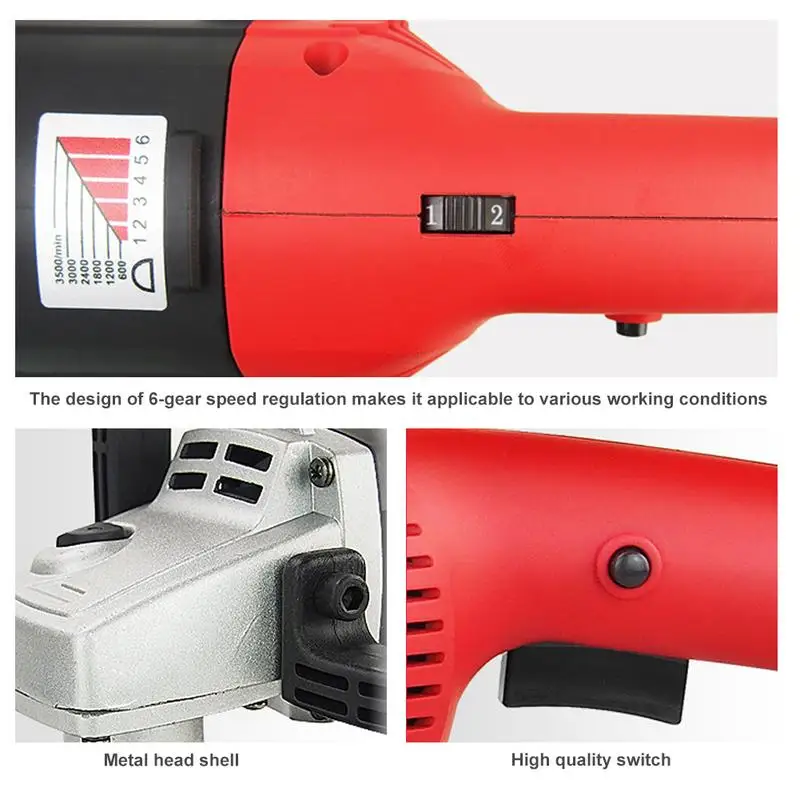 Особенности:1400 Вт высококачественный прочный двигатель из чистой медиШесть регулировки скорости, регулировка скорости в соответствии с различными условиями работыДизайн Большого охлаждающего окна, не горящая машинаЗамок предохранительного вала, легче заменитьТонкий дизайн ручки для более удобного захвата.Осевой вентилятор, тепловыделение быстрееПосле разогрева устройство работает плавно.
