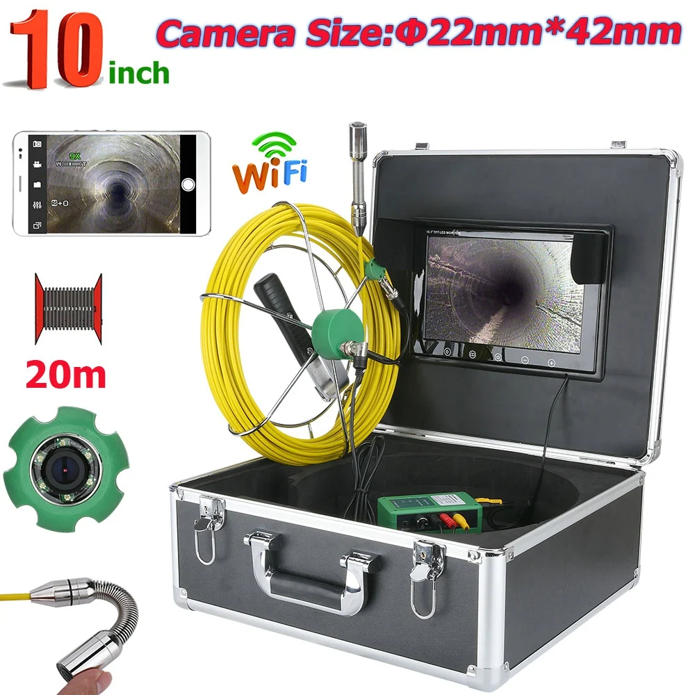 20 м 10 дюймов WiFi Беспроводная 22 мм промышленная труба канализационная инспекционная видеокамера система IP68 водонепроницаемая 1000 TVL камера с приложением фотографирование, запись видео