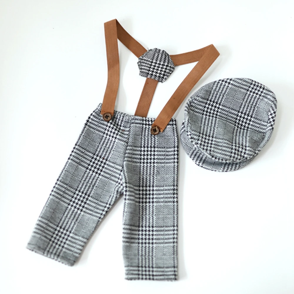 Клетчатая Одежда для маленьких джентльменов, комплект длинных брюк и шапки для новорожденных, реквизит для фотосъемки, фото, двойной наряд