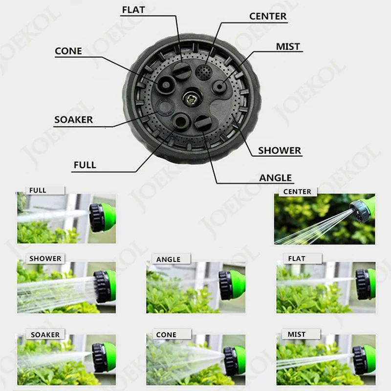 7 режимов распыления воды, полный, туман, струя, душ, плоский, центр, конус, выберите оптимальный режим, который вам нужен