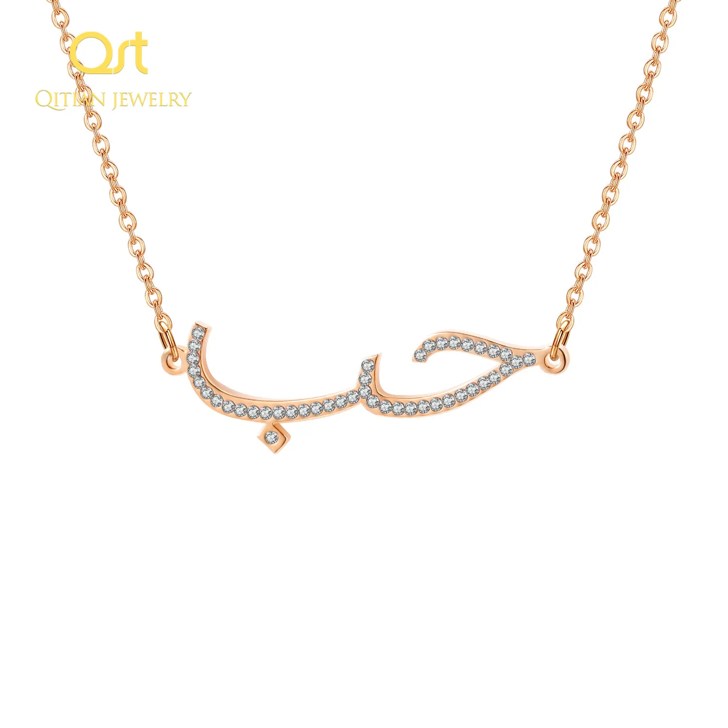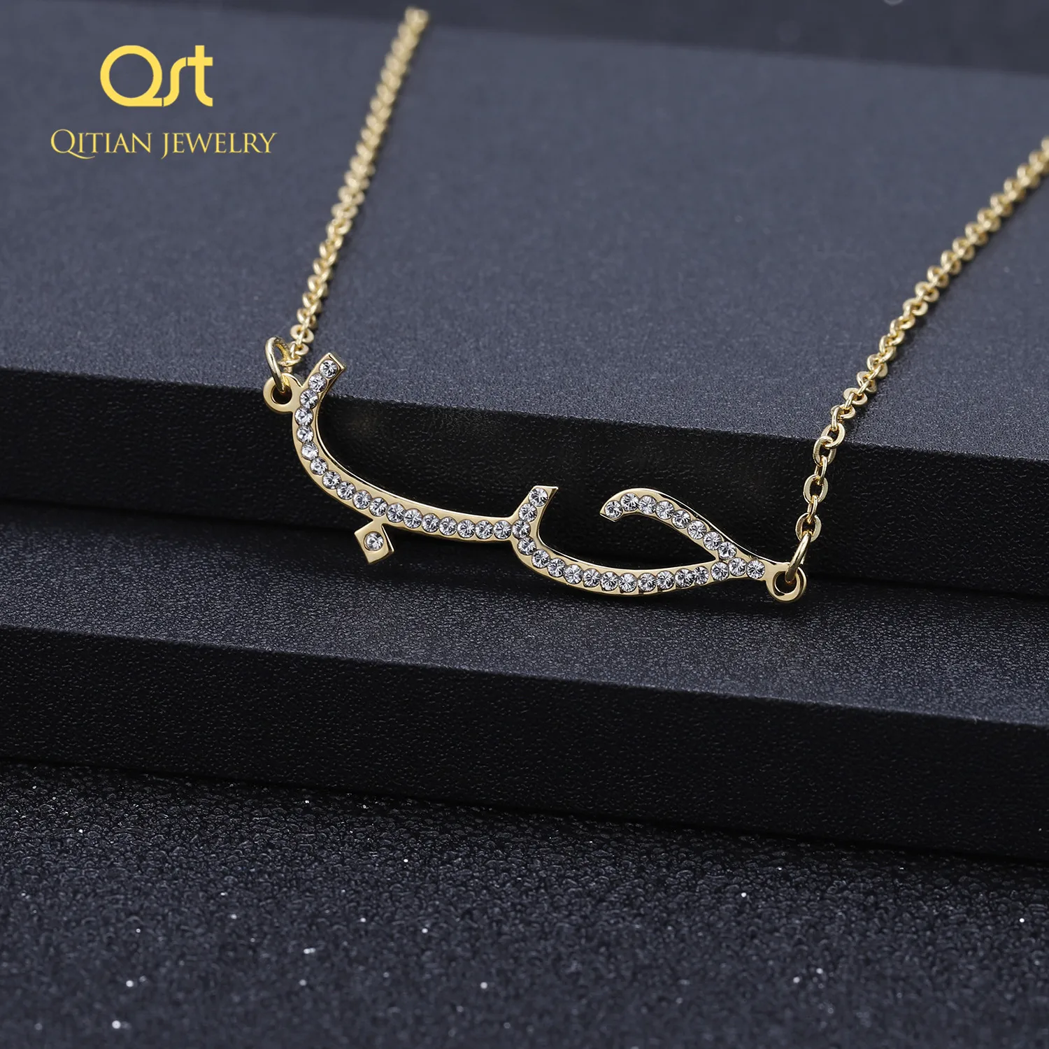 Заявление на арабском языке Crstal подвеска I love You ожерелье Пользовательское имя колье из нержавеющей стали серебряного и золотого цветов, ювелирные изделия из жемчуга для женщин подарок