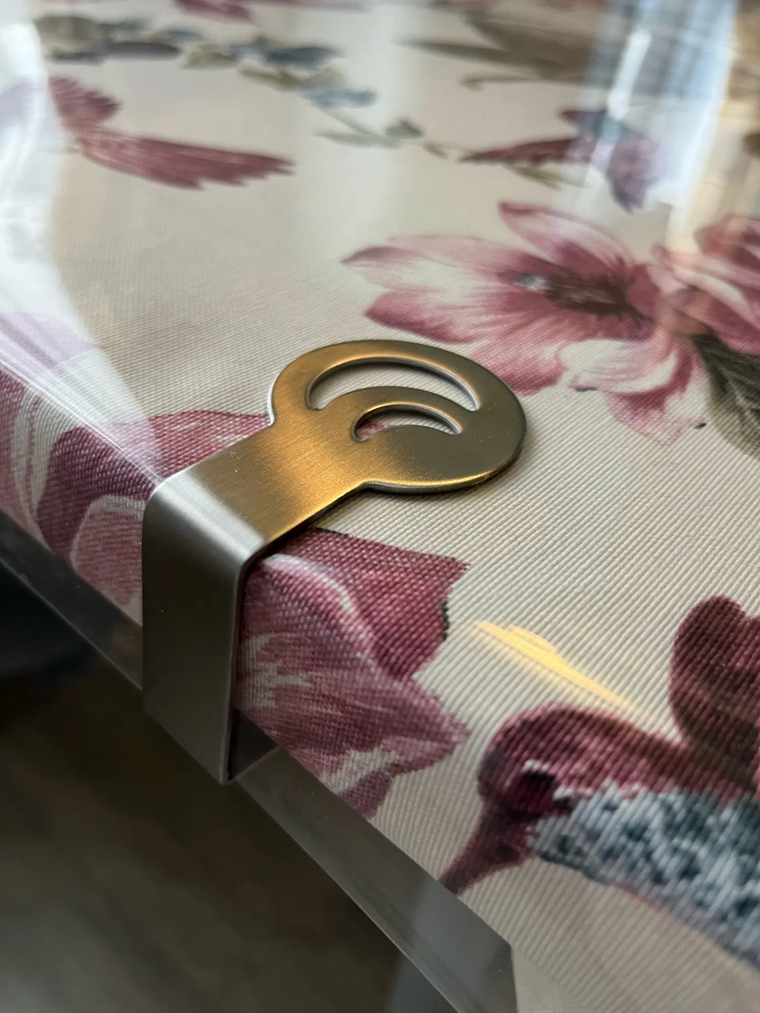 Очень нужные держалки, у меня поверх хлопковой скатерти постелена толстая клеенка, модные то сейчас знаете?! И ребенок постоянно подходит к краю стола и тянет скатерть и всё что на ней стоит, соответственно она то падает то скатывается. Глаз задергался через месяц постоянно поправлять. Учтите толщину столешницы, у меня 3,4см, с натугом но муж как то натянул их. Товар советую, прям очень. За руки и локти не цепляется, гладкие со всех сторон, у ребенка пропал интерес к скатерти.