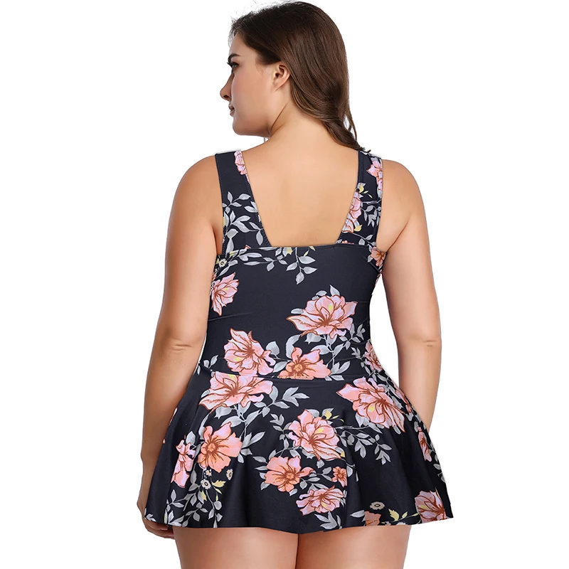 2022 Винтажные женские танкини, большие размеры, купальники, большой купальник для женщин, черный, синий, с цветочным рисунком, купальный костюм из двух частей, купальный костюм 5XL