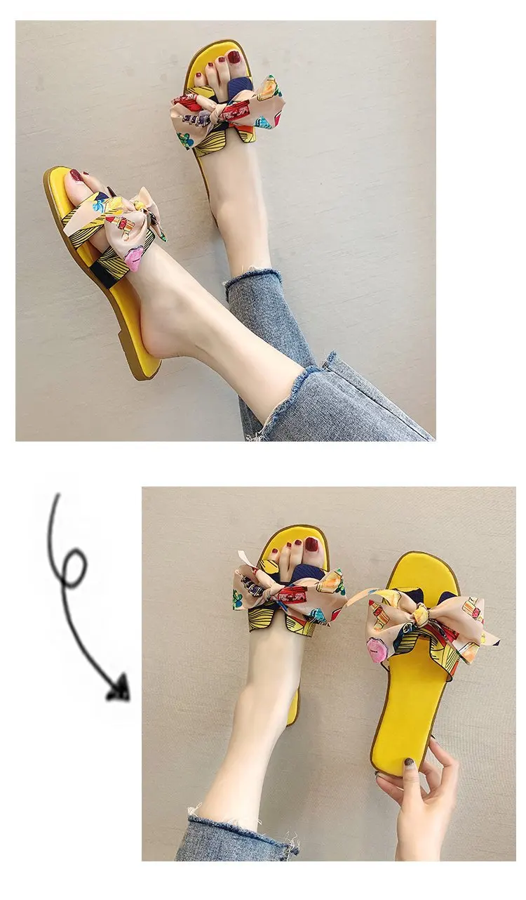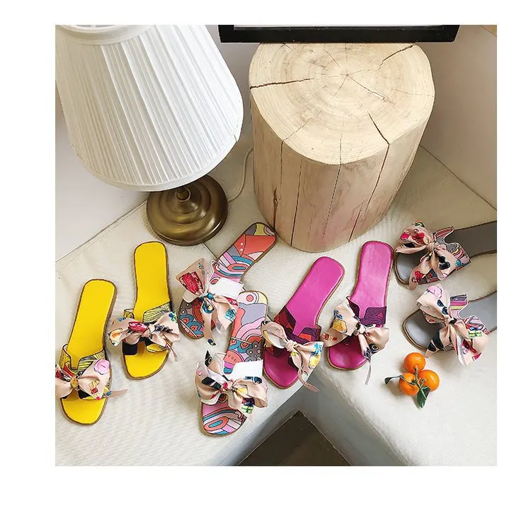 Шлепанцы Mokingtop женские с бантом, плоская подошва, Нескользящие, пляжная обувь, сандалии, тапочки, лето