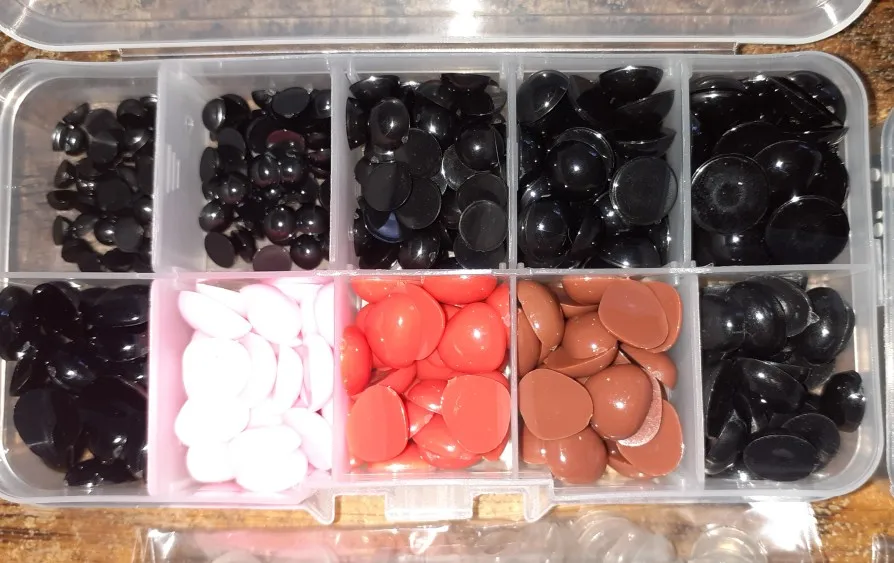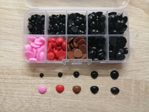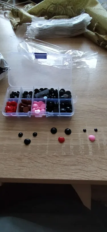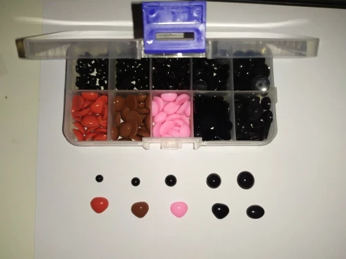 Очень хороший набор для творчества. Глазки разного диаметра, носики одинаковые по размеру, но есть одна ячейка с овальными. Единственный минус, что всё нужно клеить на клей, т к клеевого слоя нет. Все пришло аккуратно запаковано, коробочка целая. Продавцу спасибо. Получила в комплекте с другими посылками.