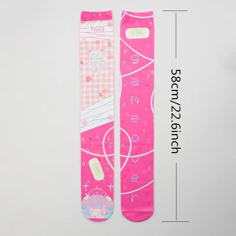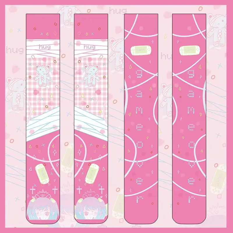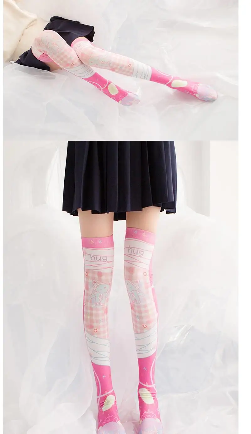 Новинка, модные пикантные Женские Высокие гольфы, розовые милые шелковые чулки с 3D-принтом медведя, персонализированные нейлоновые тонкие чулки для косплея