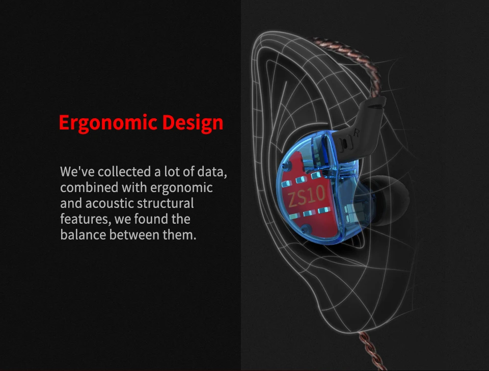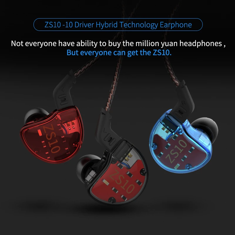 Наушники-вкладыши KZ с гибридной технологией 4BA + 1DD, Hi-Fi, гарнитура с шумоподавлением, профессиональные наушники AS10 ZST для диджея