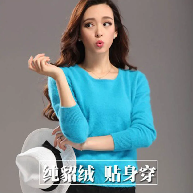 Женский свитер 100% норковая ткань зимние теплые свитера с круглым вырезом Женский пуловер Горячая Распродажа норковая кашемировая одежда