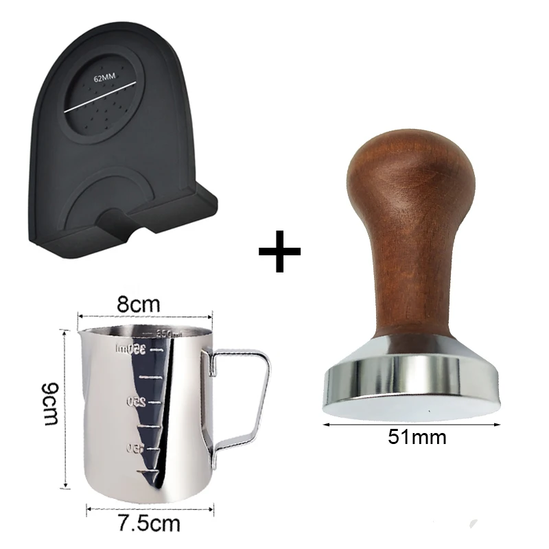 Тампер для кофе 51 мм, для пищевых продуктов, с деревянной ручкой, для бариста, эспрессо, кофемолка ручной работы, силиконовый коврик, выдвижная чашка
