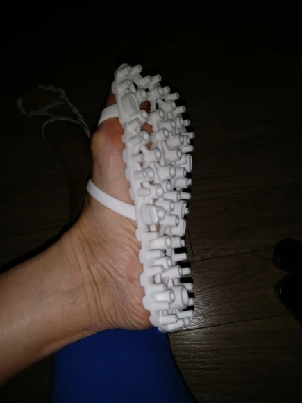 тапки суперские для тех, кто хочет размять стопы и активировать акупунктурные точки. ходить реально больно , как по камням на море. Брала для дочери от плоскостопия, ходим по 5-10 минут в день. рекомендую