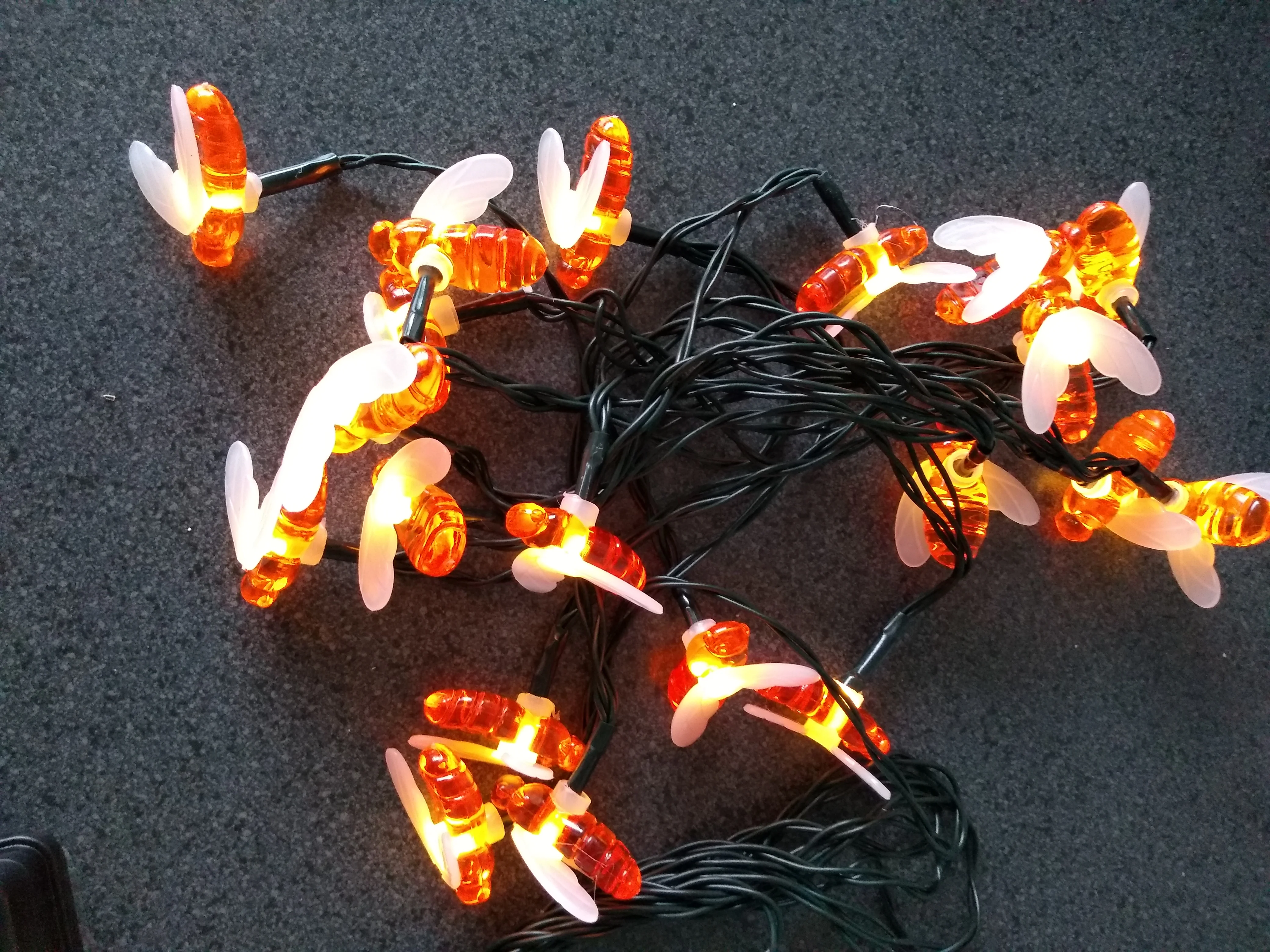 Гирлянда очень симпатичная и качественная. Пчелки смотрятся и днем хорошо, когда еще не горят, и ночью, когда светятся, горят красивым теплым цветом. Товар был упакован в коробочку, инструкция на английском и немецком прилагалась. Единствнный минус - посылка не отслеживалась по территории России.