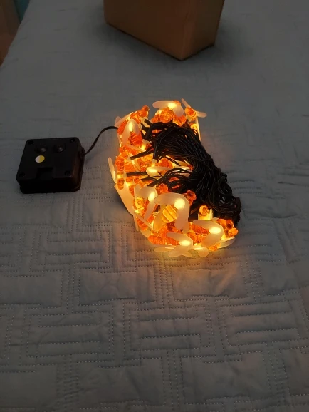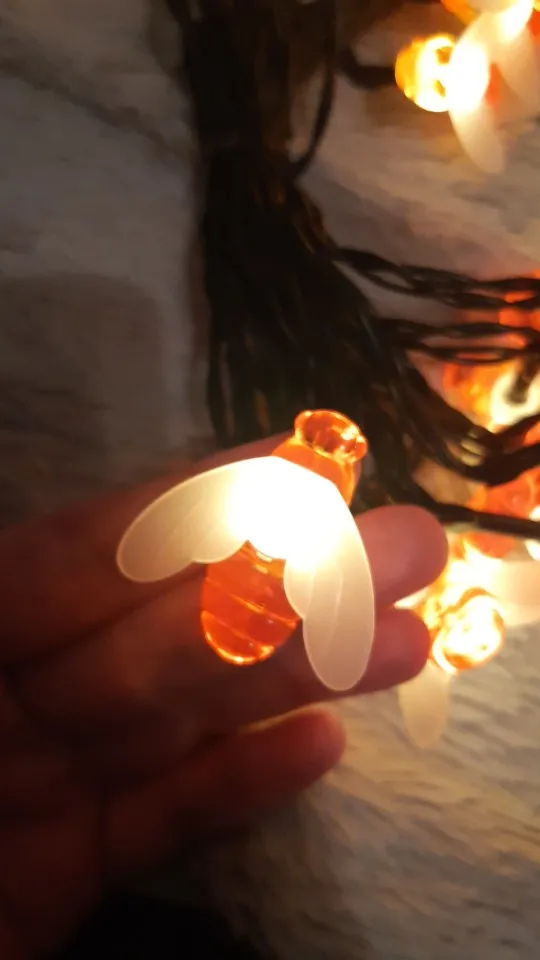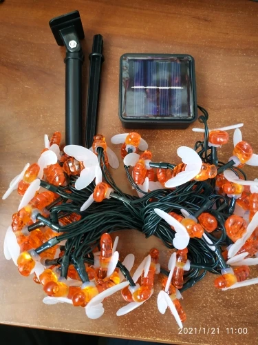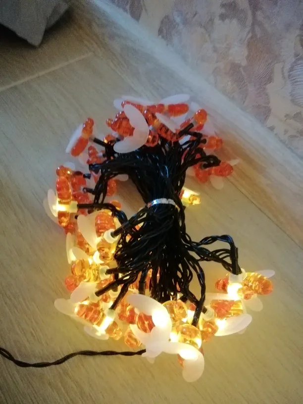 Прикольная гирлянда, несколько режимов работы. Пришла заряженная, сразу можно проверить работоспособность. Заказывал две гирлянды - обе работают. На одной из гирлянд не хватает одной «пчелки», в посылке отдельной «пчелки» не было, значит, её изначально не установили. Так как гирлянды покупал в подарок, это немного расстроило.