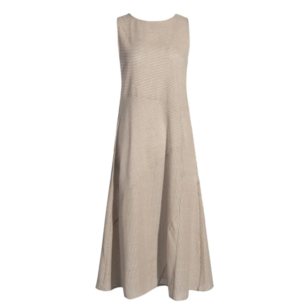 Платье женское длинное в полоску, повседневное льняное элегантное в Корейском стиле, с круглым вырезом и карманами, без рукавов, на лето