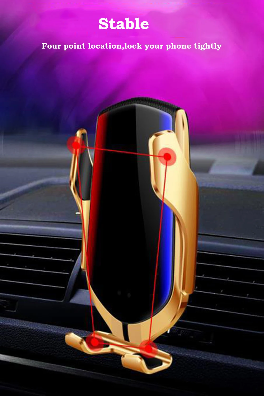 Держатель автомобильного зарядного устройства с инфракрасным датчиком, быстрая Беспроводная зарядка с креплением Qi, зарядное устройство для iphone 12, 11, 8 Plus, для Huawei P40