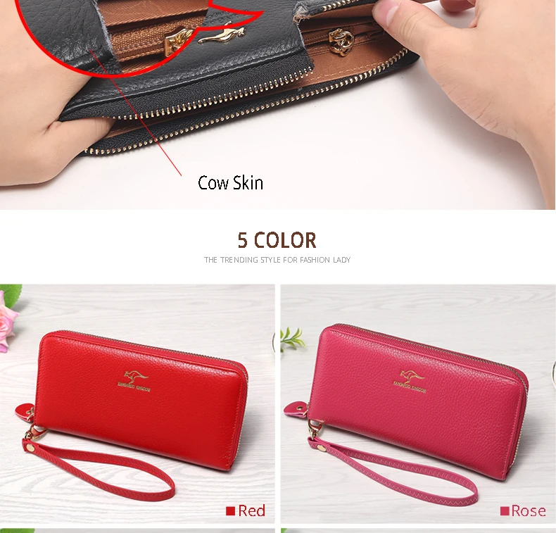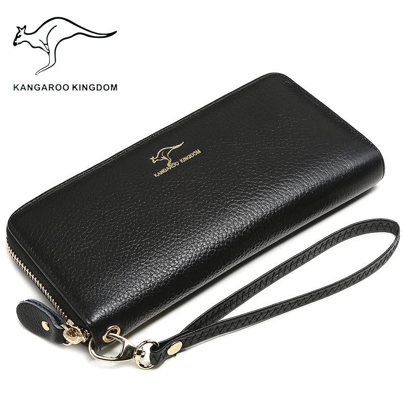 Женский Длинный клатч-кенгуру, из натуральной кожи, на молнии, с отделением для карт