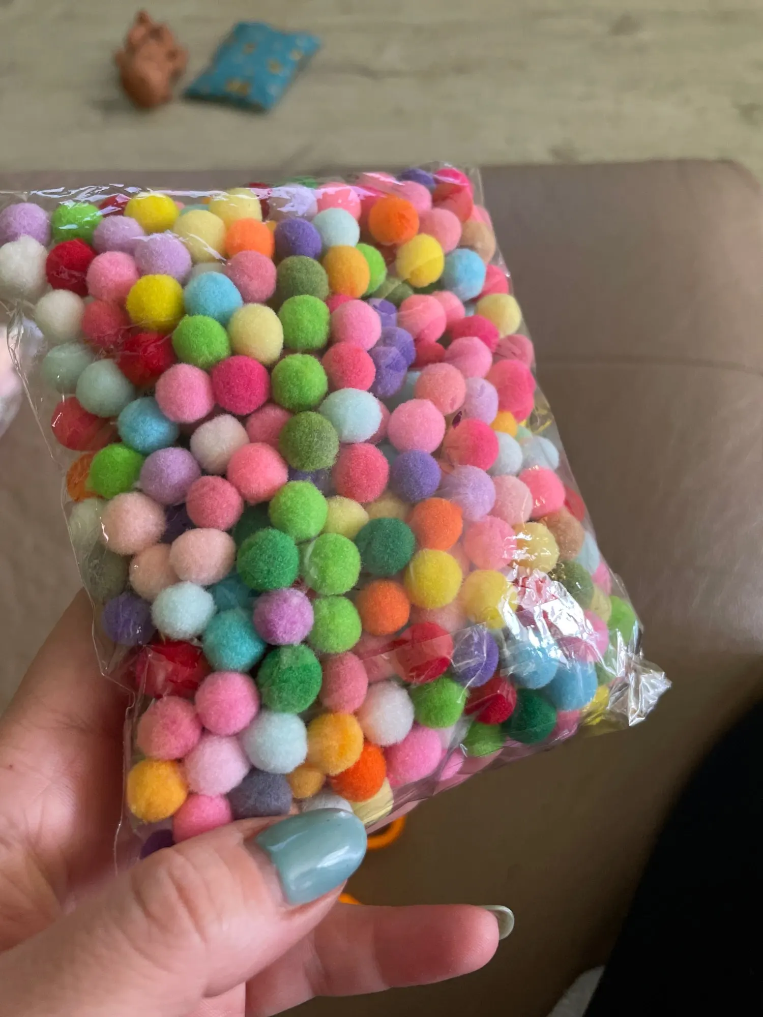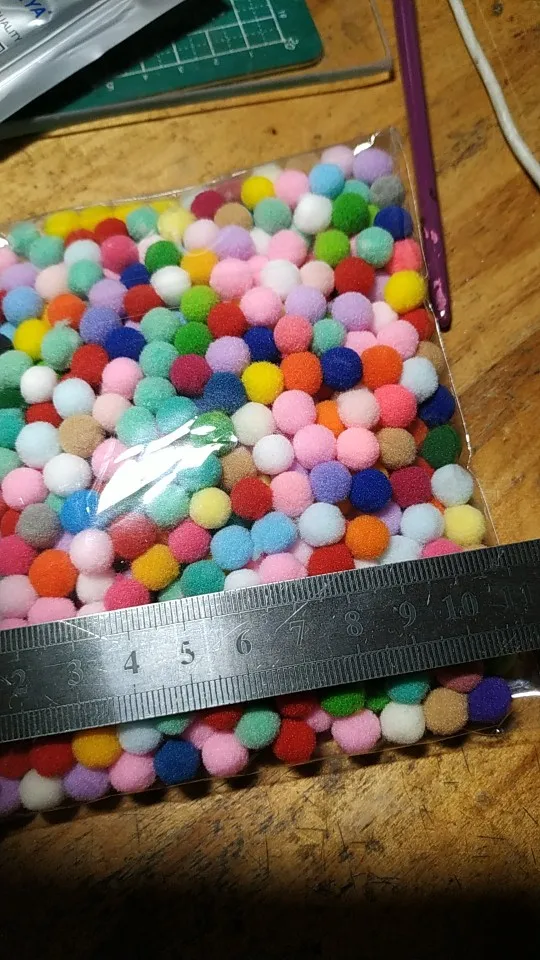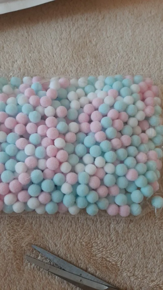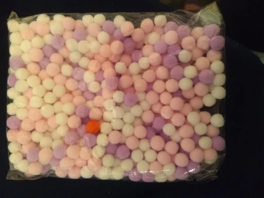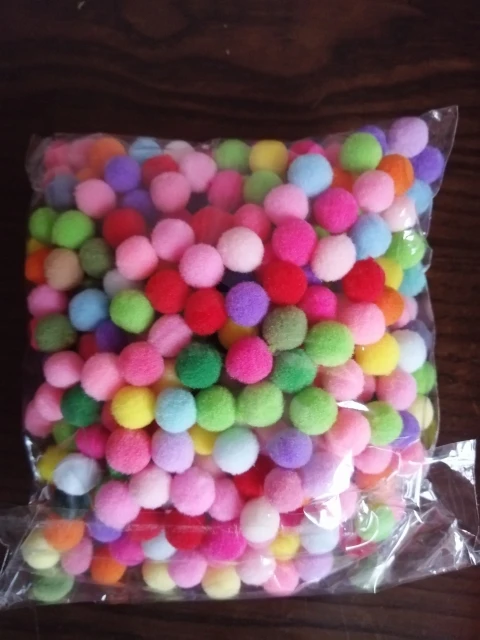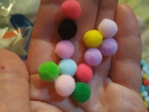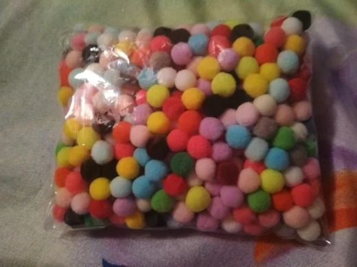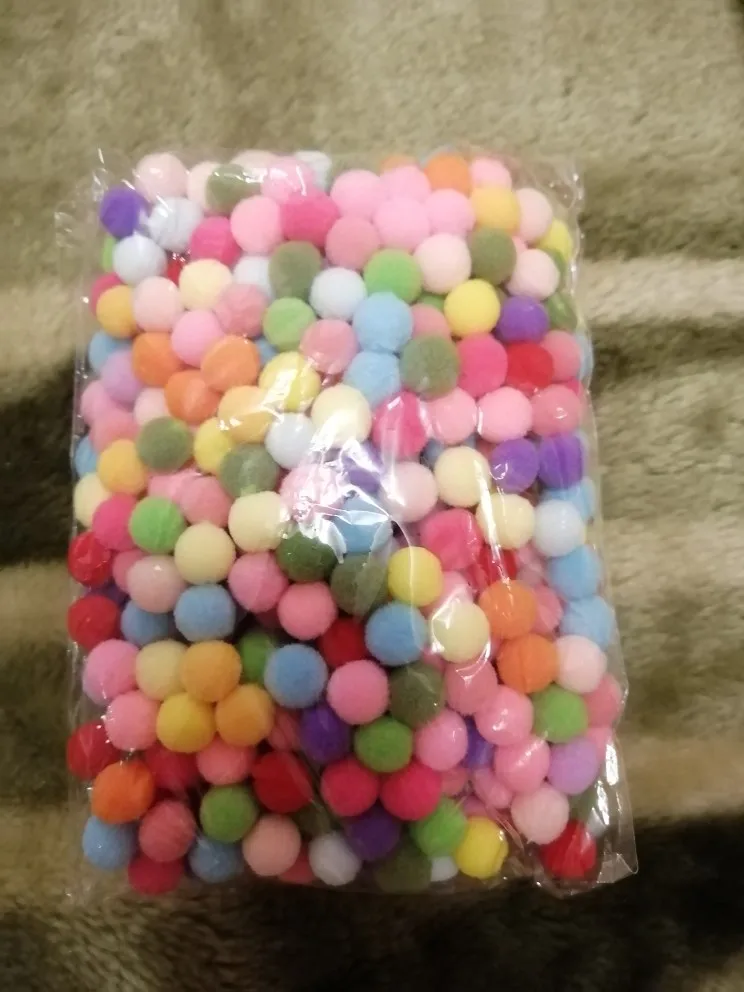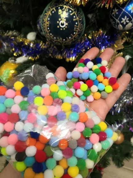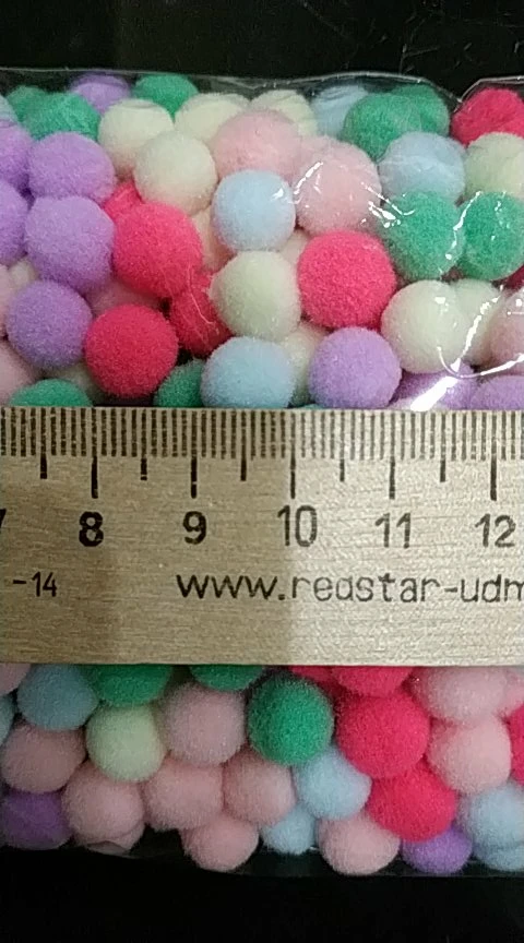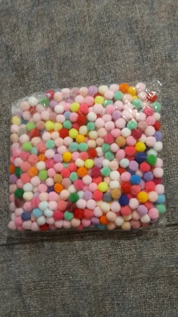 Помпончики очень хорошего качества. Количество правда не пересчитывала, надеюсь что 400 штук. Размер 1 см. Цвета красивые, как на фото продавца. Упаковано хорошо. Доставка до МО около трех недель. Рекомендую продавца и магазин.