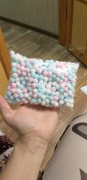Очень милые шарики. Подойдут для фотографов и рукодельниц. Чистые, мягкие, цвет соответствует, количество не считала