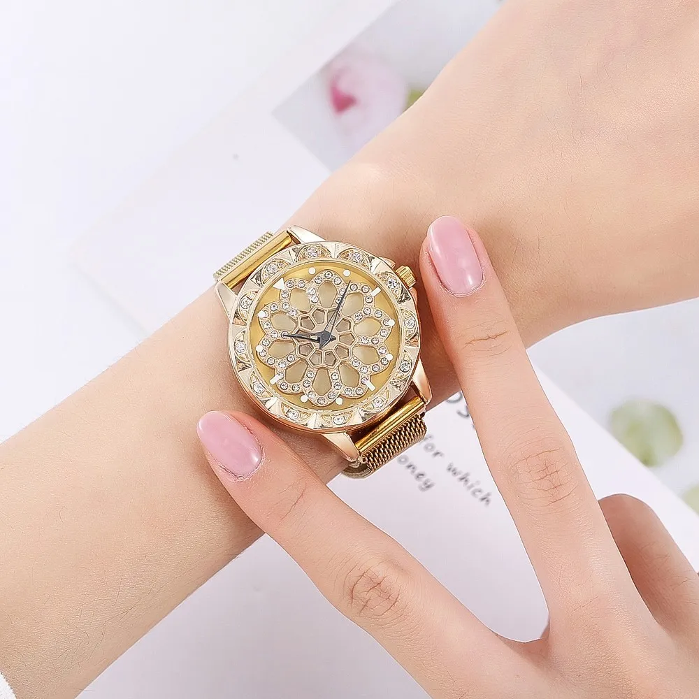 Часы наручные женские с вращением на 360 градусов, популярные люксовые модные повседневные с магнитом и звёздным небом, с римскими цифрами