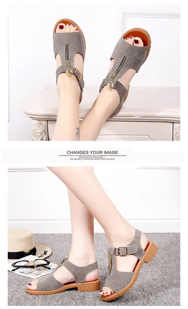Замшевые повседневные сандалии на плоской подошве, женская летняя о...