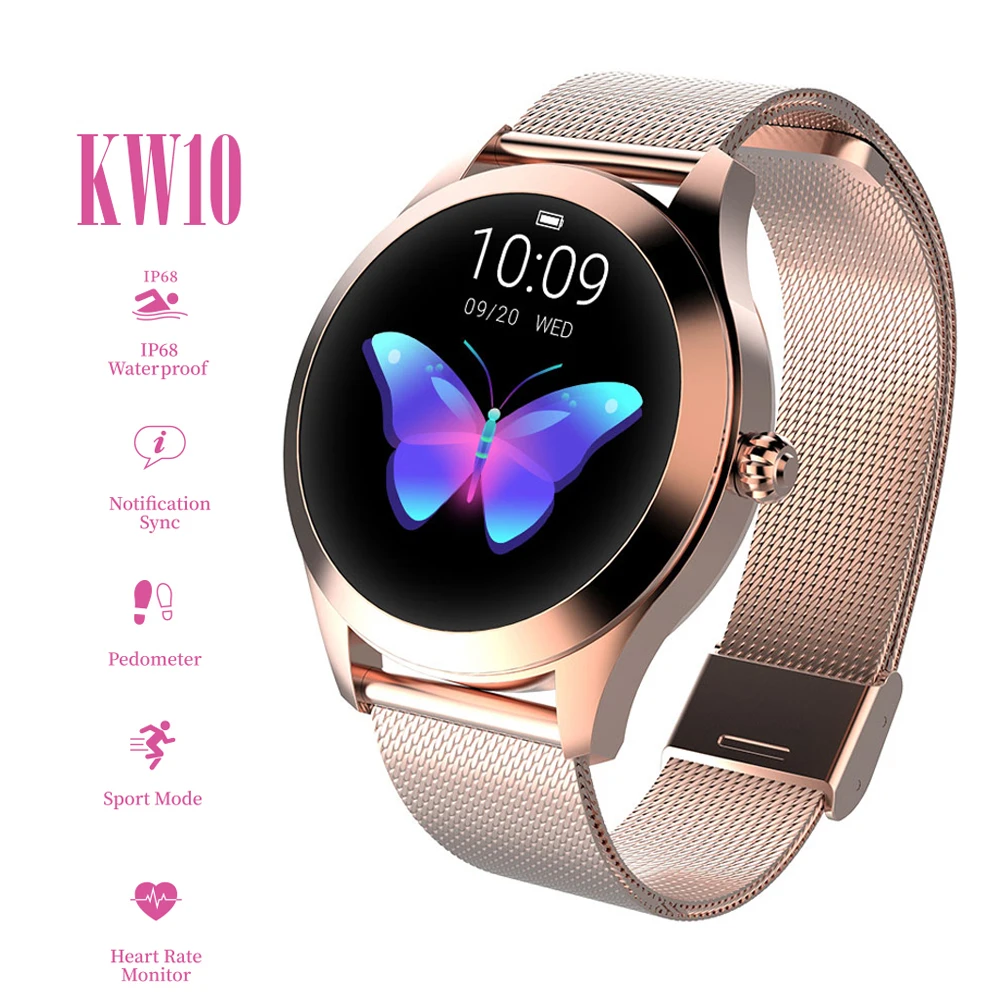 Женские умные часы KW10, водонепроницаемый IP68 браслет с Bluetooth и пульсометром, для устройств на Android и iOS, смарт-часы