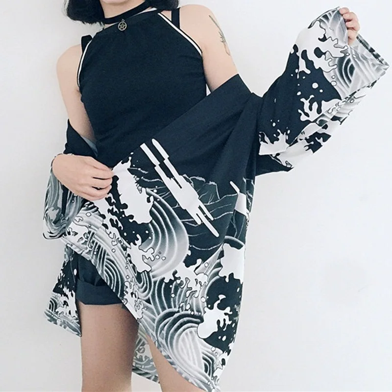 Кимоно, женский кардиган, японское пляжное кимоно, рубашка, женское традиционное японское кимоно, лето 2021, юката, белый, хаори, Оби