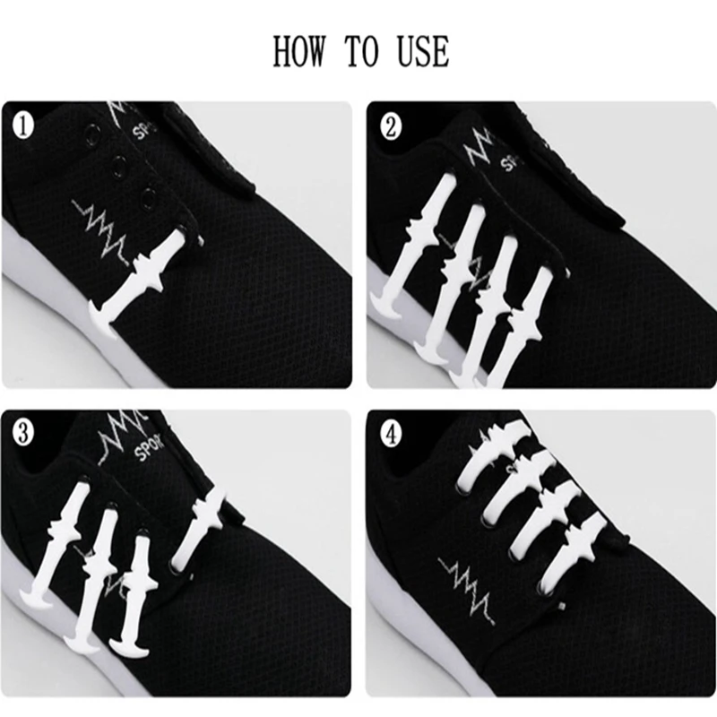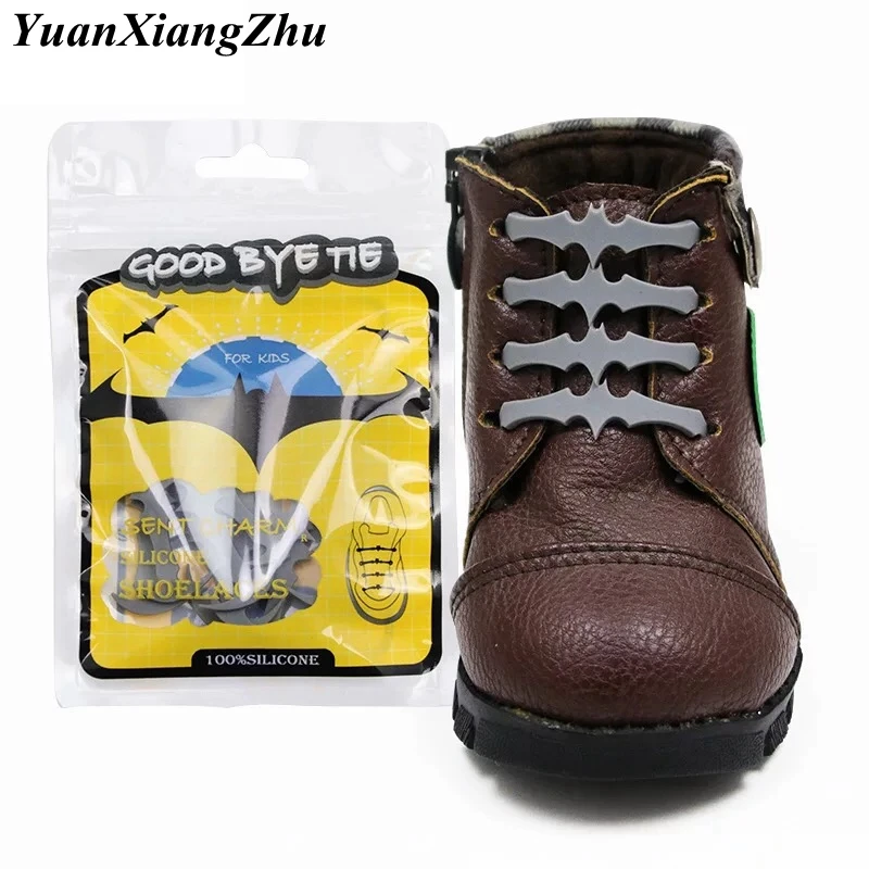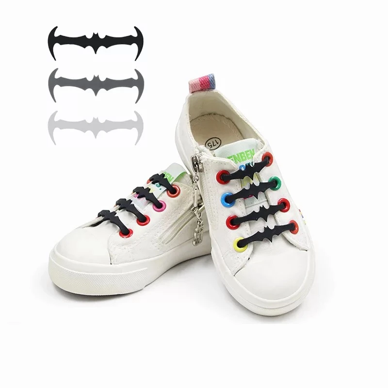 Силиконовые шнурки 12 шт.компл., эластичные, пластиковые, без завязывания, белые, черные, серые, силиконовые шнурки для детской обуви в форме летучей мыши