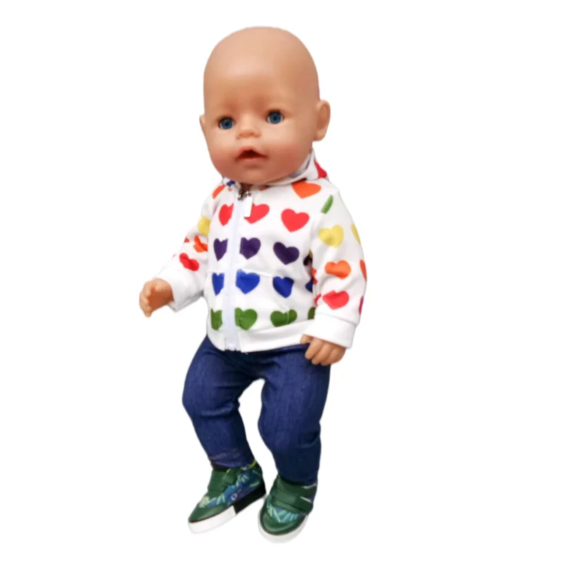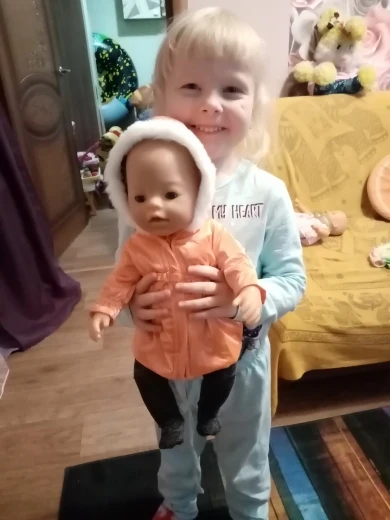 костюм хороший , правда торчат в некоторых местах нитки (особенно сзади на лямках). Кофта из трикотажа, изнутри обработано, штанишки из плотного хлопка. Мне и мужу понравилось. Лучше заказывать комплекты из кофты и юбки или штанишек если хлопок так одеть на куклу легче. Если платье то верх лучше трикотаж или все из трикотажа или вязаное (правда вязаное еще не заказывала - дорого. Заказывали в подарок к пупсу 40 см. Шло долго наверно месяц. Но это не продавец а доставка виновата. Рекомендую и костюм и продавца. 4 звезды за нитки а так все отлично