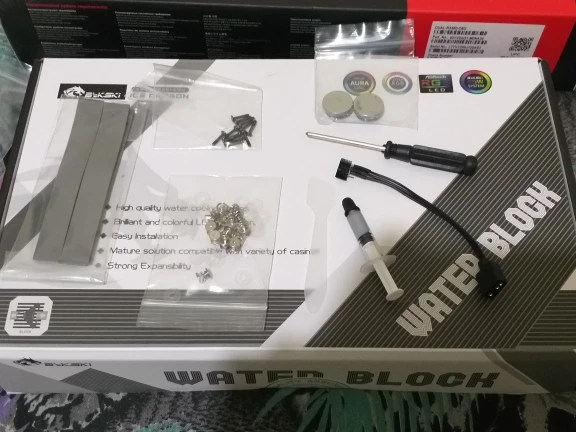 Eu tenho 2 rx580 bem similares, uma asus dual e uma arez dual (asus também, basicamente muda apenas alguns acabamentos), o bloco não encaixou na asus dual, sendo necessário cortar um pedaço, nada que tenha afetado o produto na minha opinião, que sem sombra de dúvidas é de ótima qualidade. Vem com alguns parafusos e thermal pads a mais, o que é muito bom pois a mola pode fazer os parafusos voarem, acabei perdendo um deles, quanto aos thermal pads pode ser necessário trocar já que o manual é inútil com imagens de uma placa mãe e eles não vem cortados em tamanhos exatos. Ao comprar estejam cientes que o bloco é um pouco pesado, talvez seja bom usar um suporte. Recebi rápido, bem embalado sem nenhuma marca nas caixas e não fui taxado, super recomendo o vendedor. Não vou avaliar o desempenho agora por falta dos tubos.