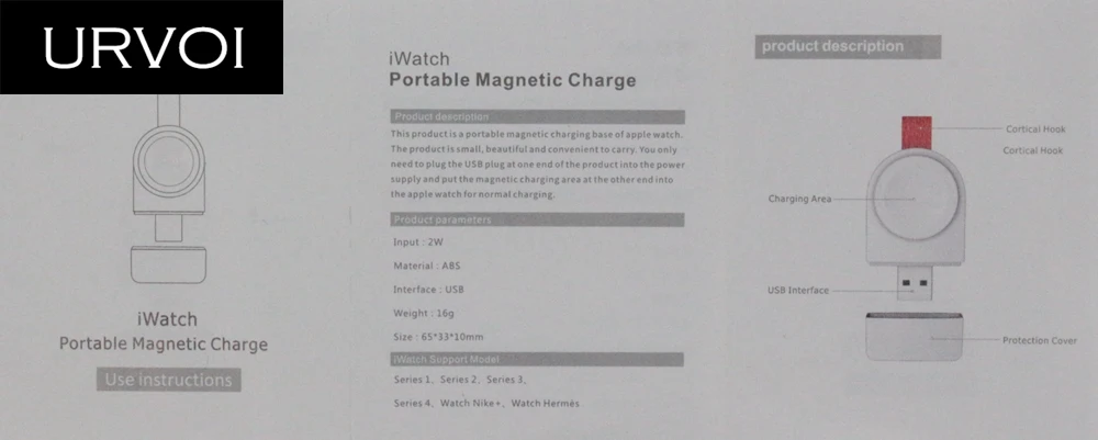 URVOI Беспроводное зарядное устройство для Apple Watch series 5 4 3 2 1 портативный держатель для зарядки Удобная Магнитная подставка 2 Вт вход USB разъем для ремонта