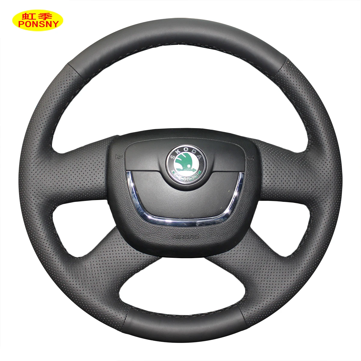 Чехлы рулевого колеса автомобиля чехол PONSNY для SKODA Octavia Superb 2009-2012, прошитый вручную чехол из искусственной кожи