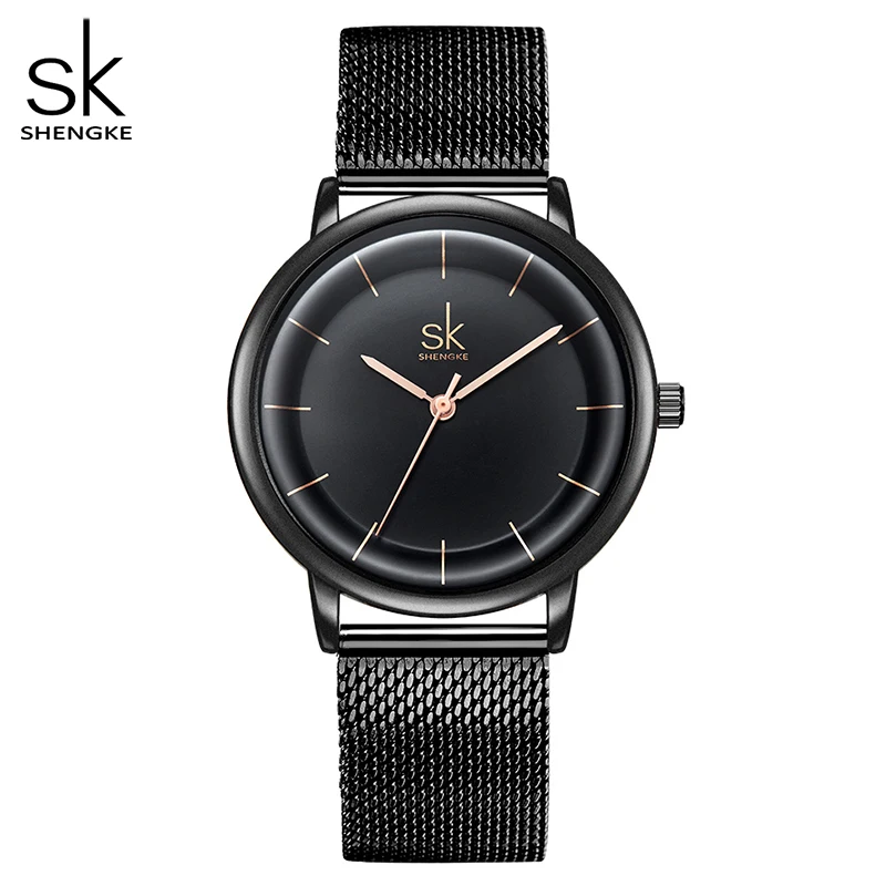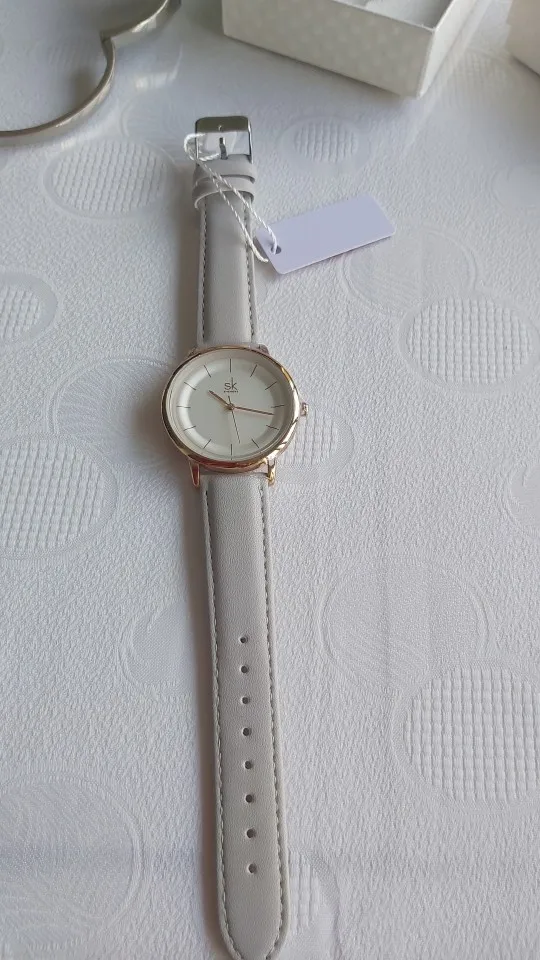 Часы наручные SK женские кварцевые, простые модные, с кожаным ремешком