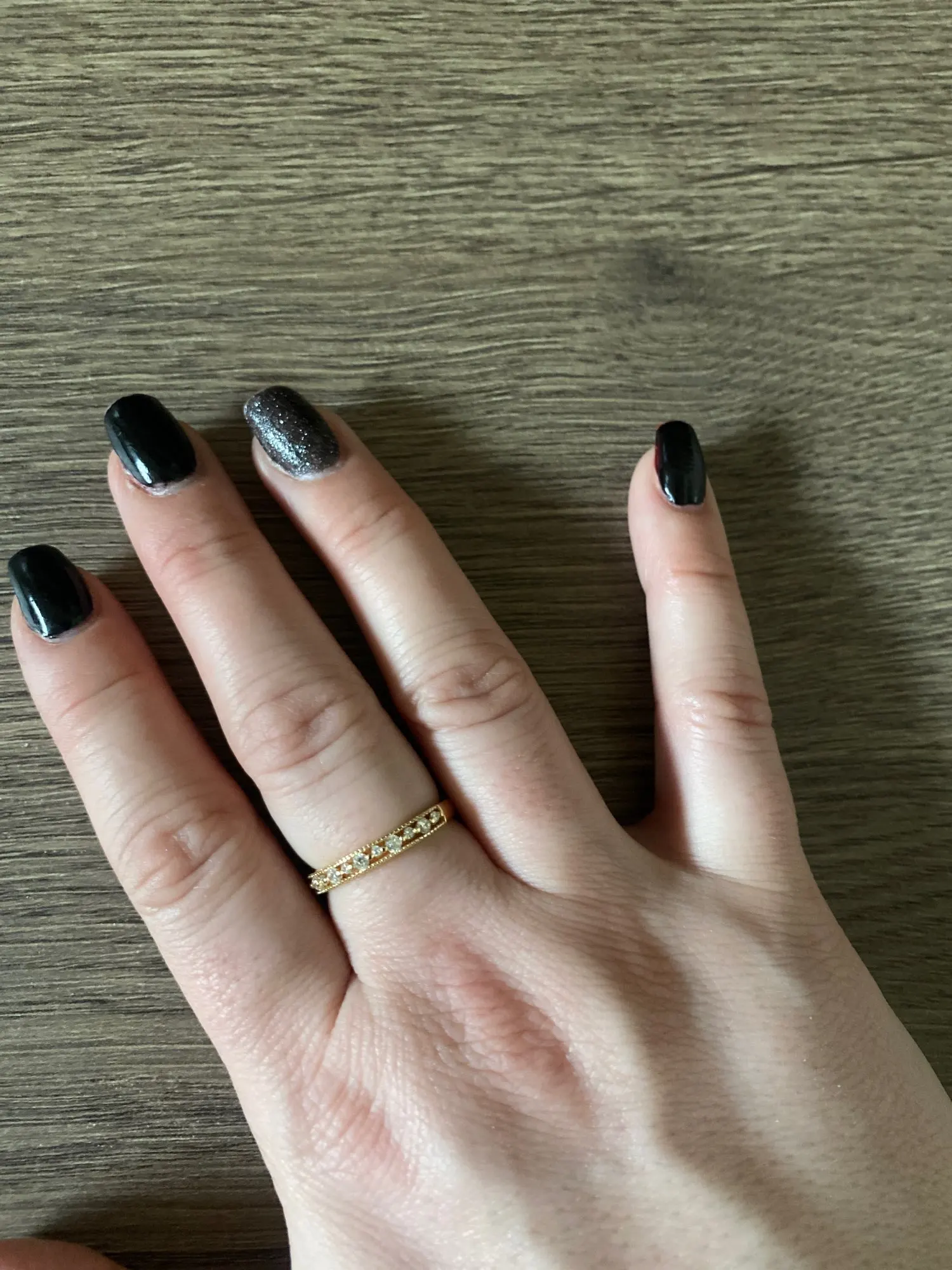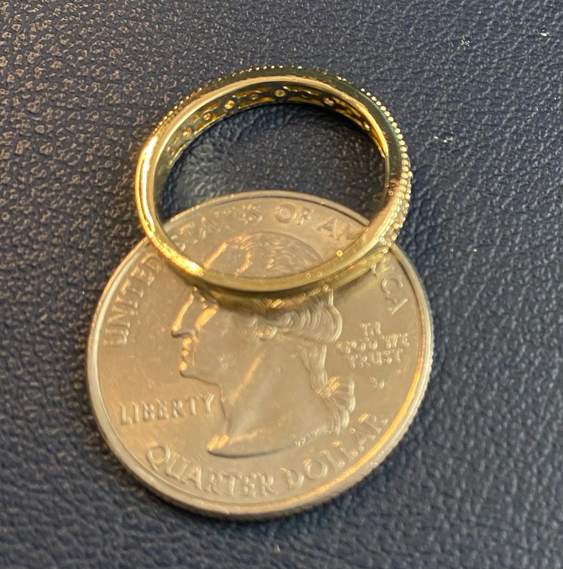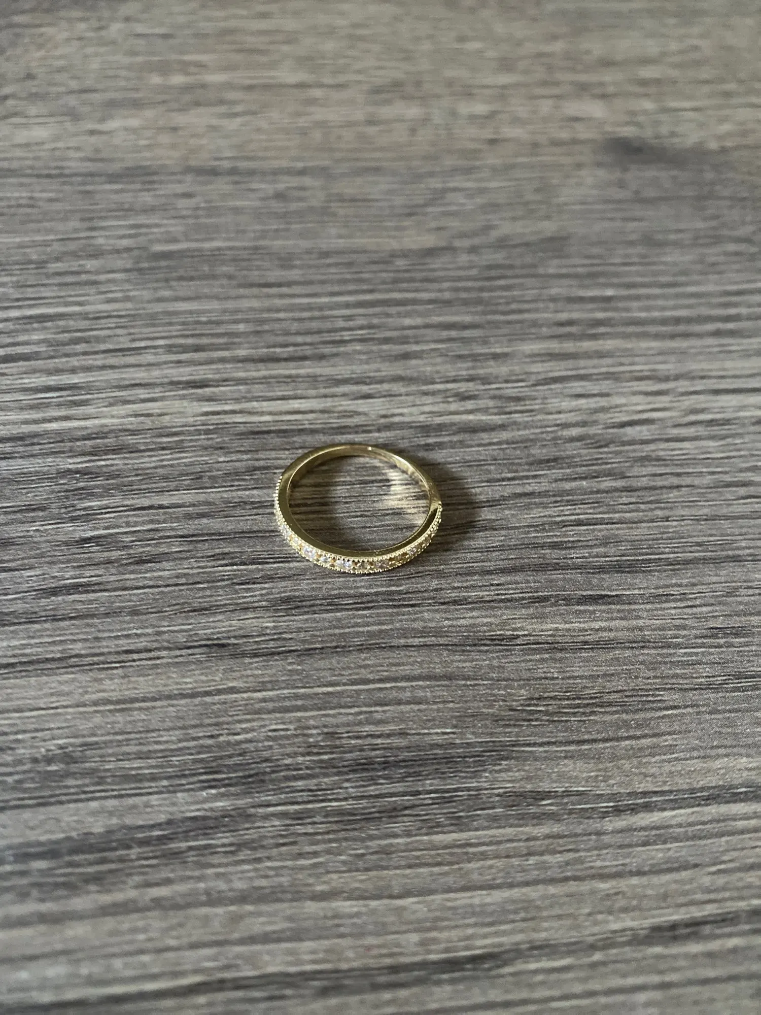 Симпатичный. Я буду носить это часто. «Золото» выглядит естественно, а камни так красиво выглядят. Я бы носил это сам по себе или с моим основным обручальным обручем. Удобно носить. Уникальный дизайн.