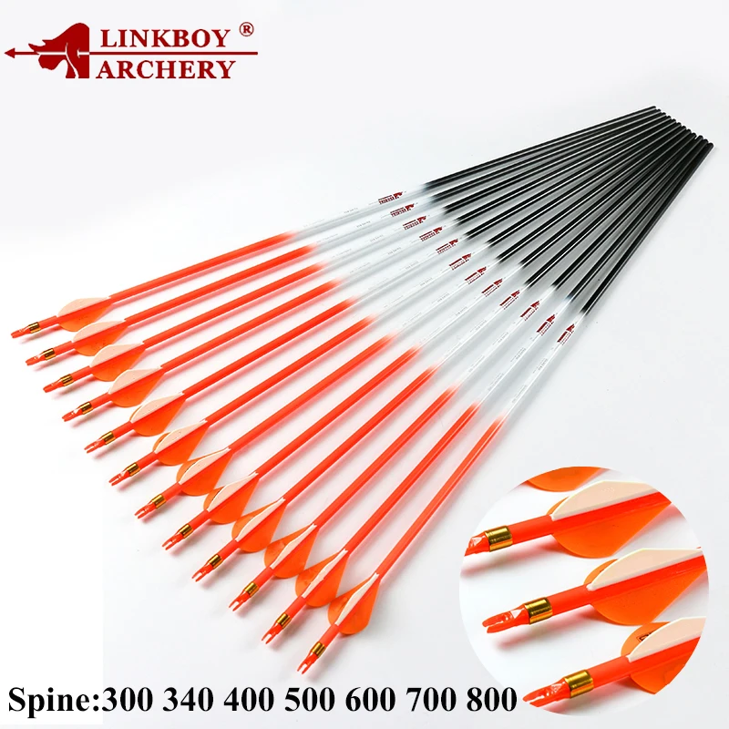 Linkboy стрельба из лука 12 шт карбоновые стрелы флуоресцентные оранжевые 2 "лопасти ID 6,2 мм блочный лук Охота стрельба