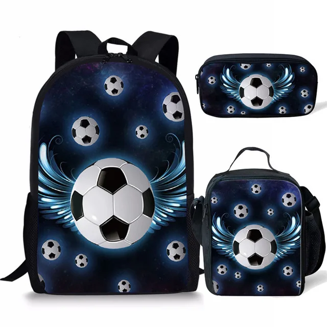 Школьный ранец с футбольным принтом THIKIN, 3 шт.компл., детские школьные сумки с рисунками для девочек, Детский рюкзак, Детский рюкзак для студентов